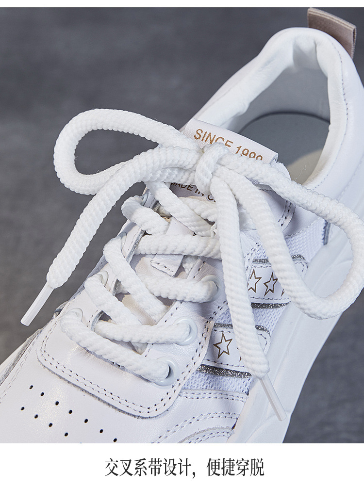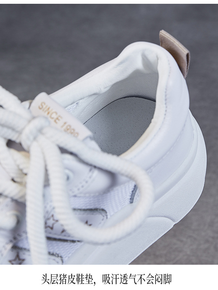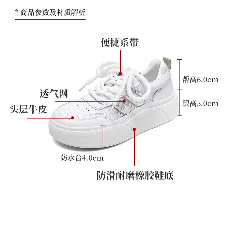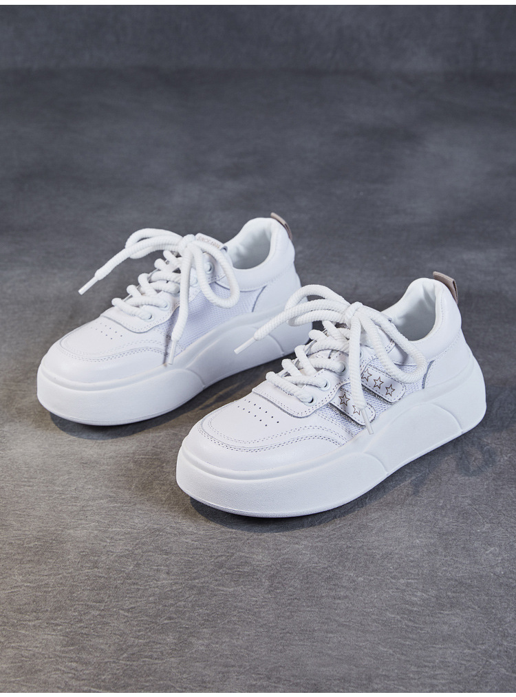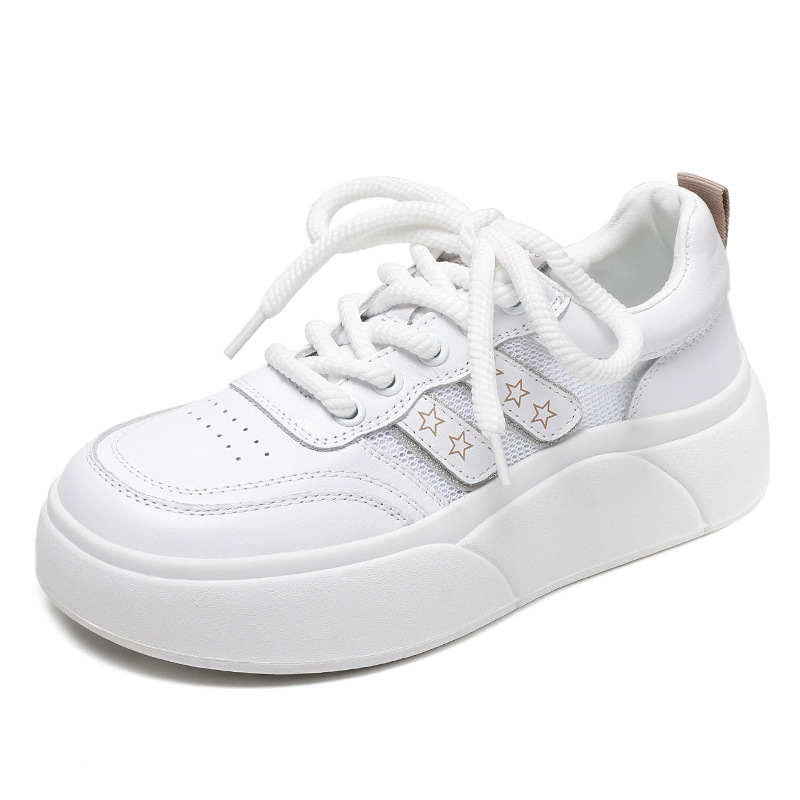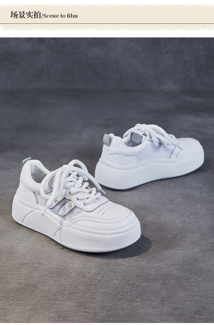 여름 정품 가죽 통기성 메시 화이트 신발 여성 두꺼운 밑창 상승 2024 새로운 한국식 올매치 스포츠 캐주얼 스니커즈