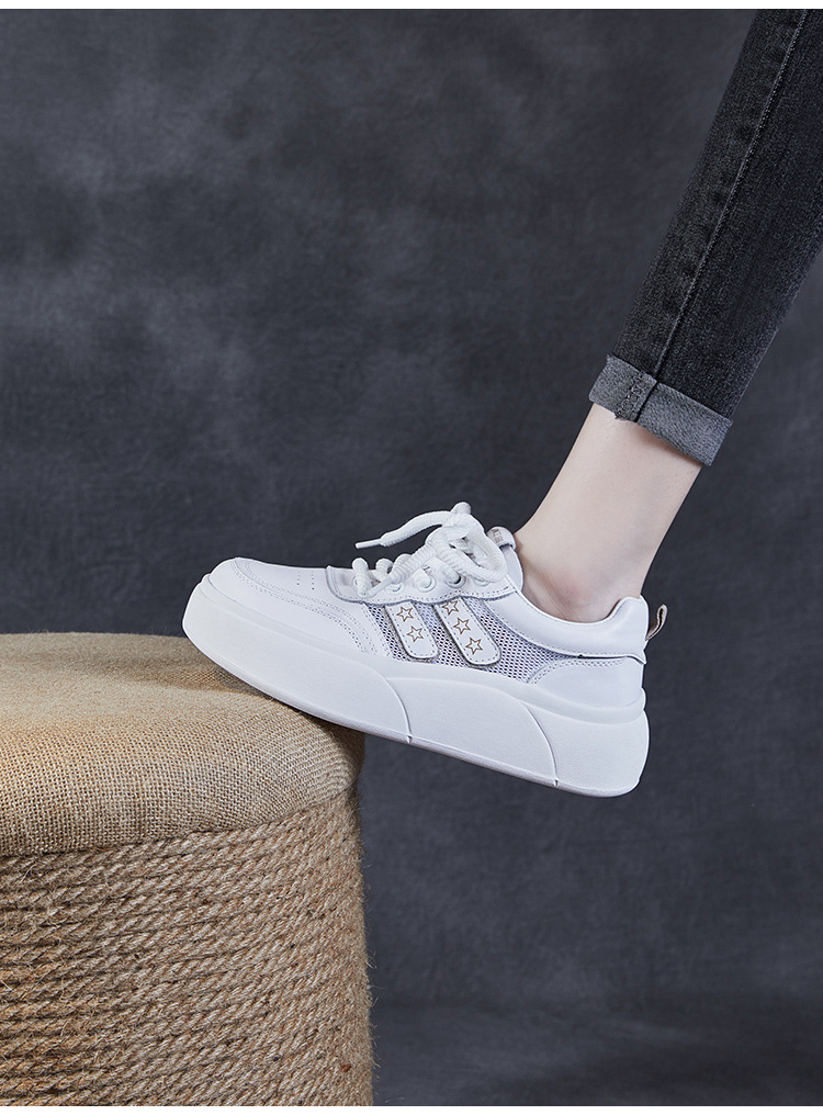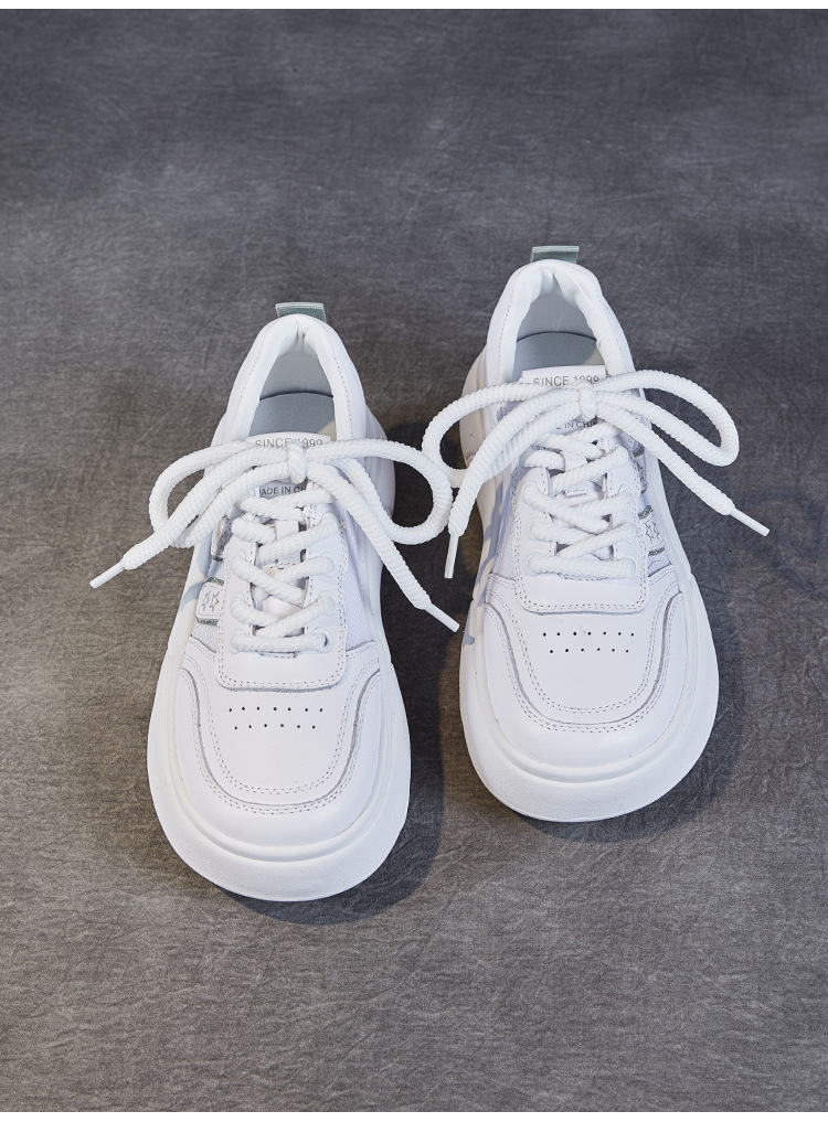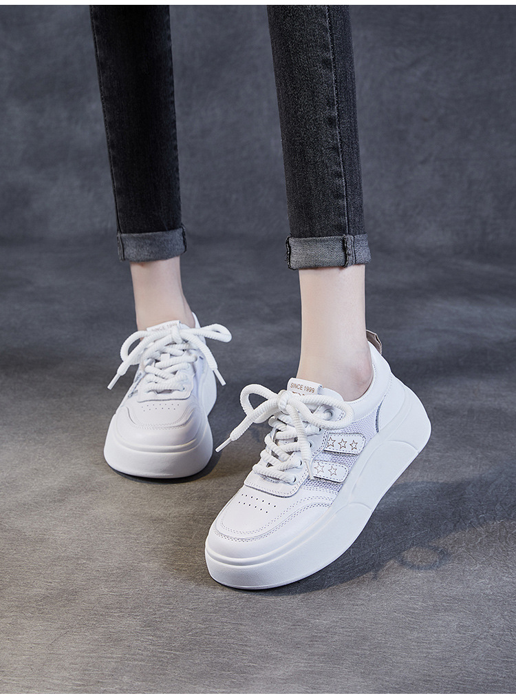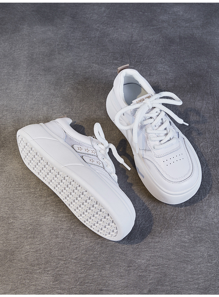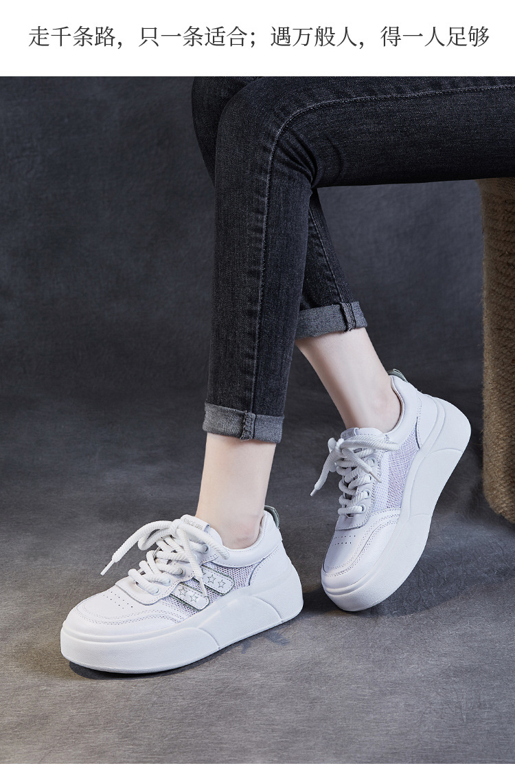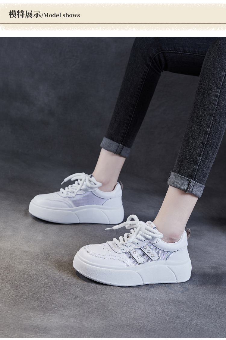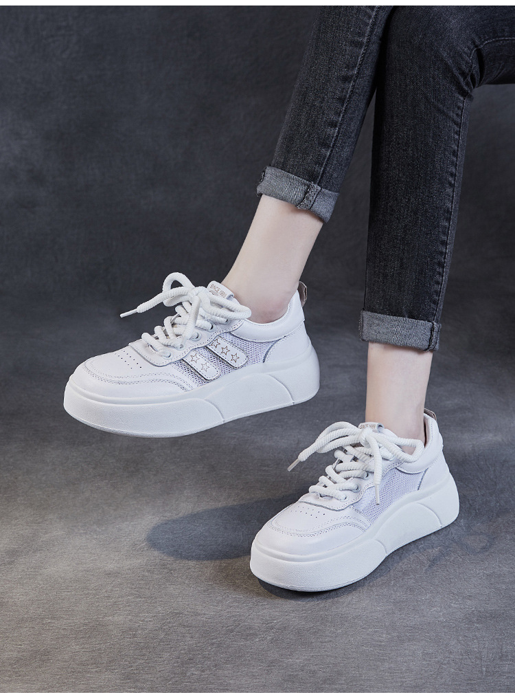 여름 정품 가죽 통기성 메시 화이트 신발 여성 두꺼운 밑창 상승 2024 새로운 한국식 올매치 스포츠 캐주얼 스니커즈스토어 가기
