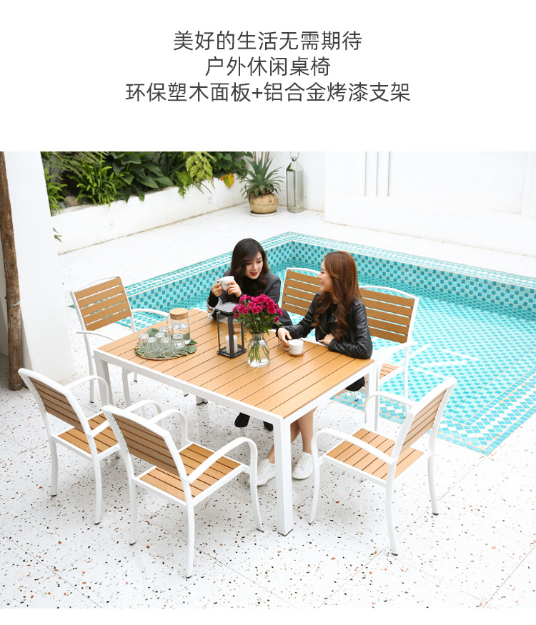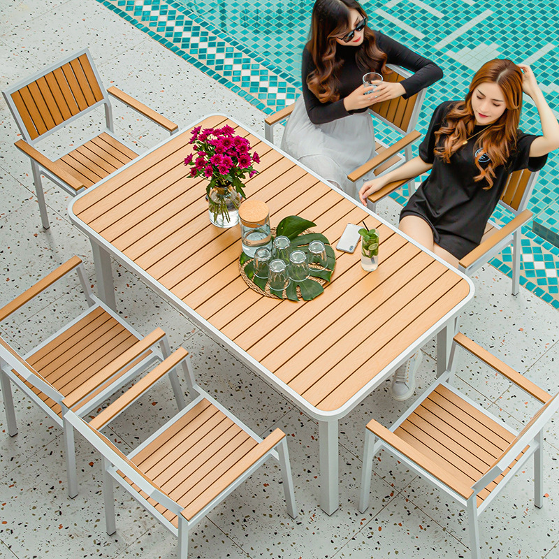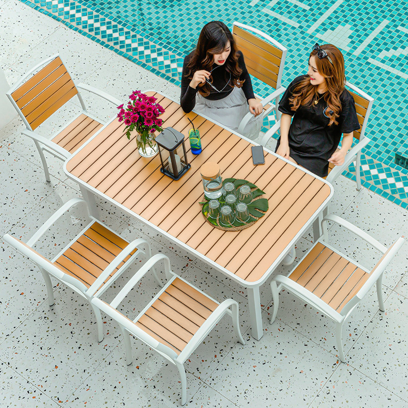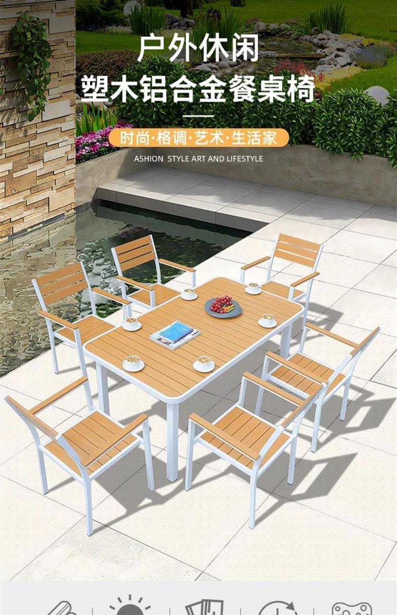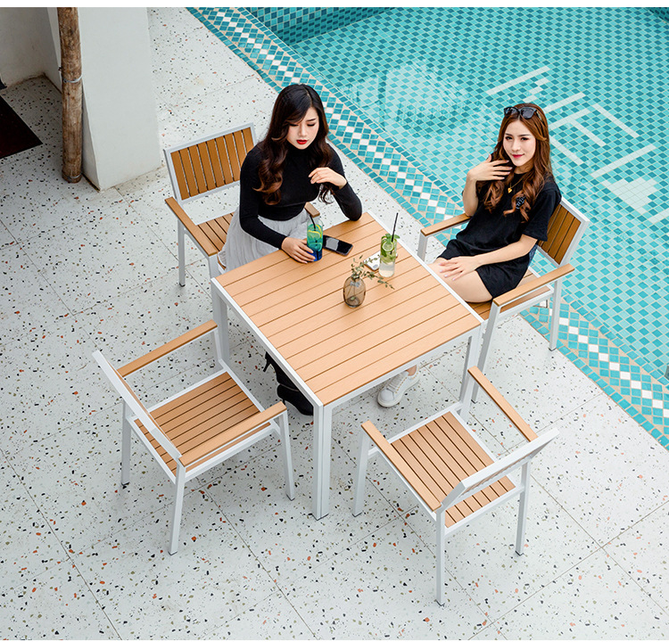 야외 플라스틱 나무 테이블과 의자 조합 안뜰 정원 발코니 야외 테라스 레저 공간 바베큐 차 식탁 의자
