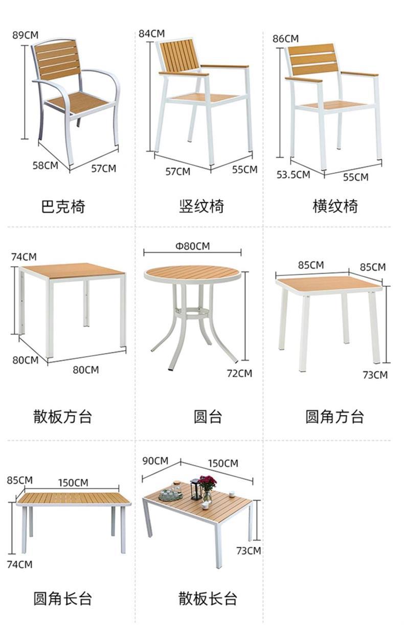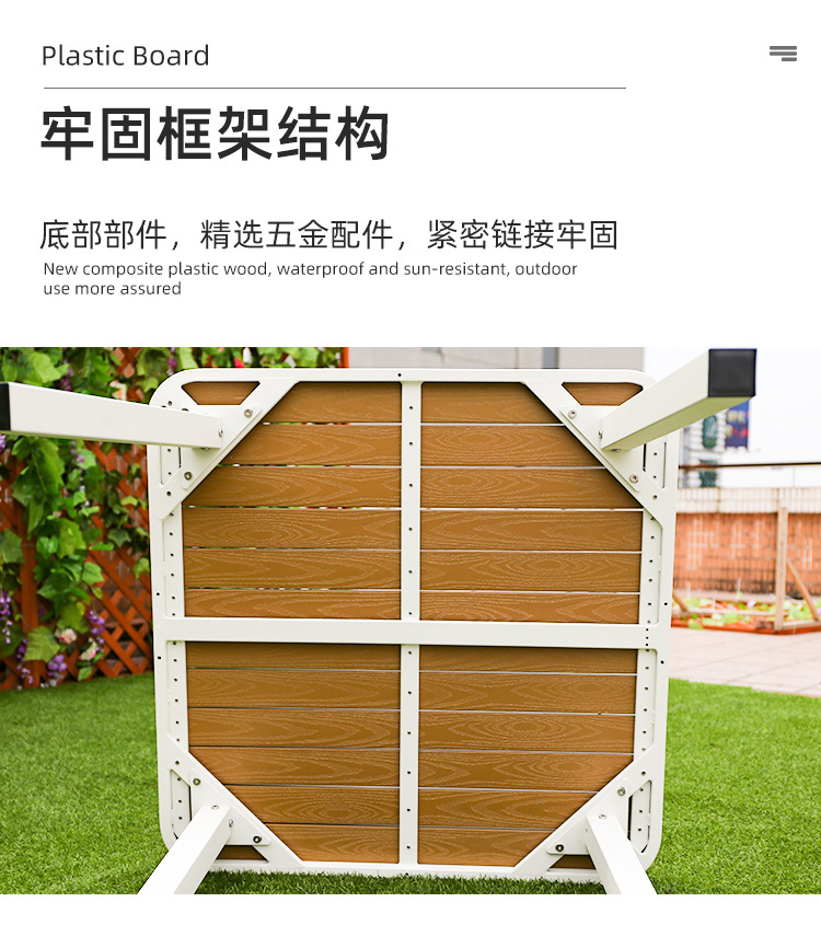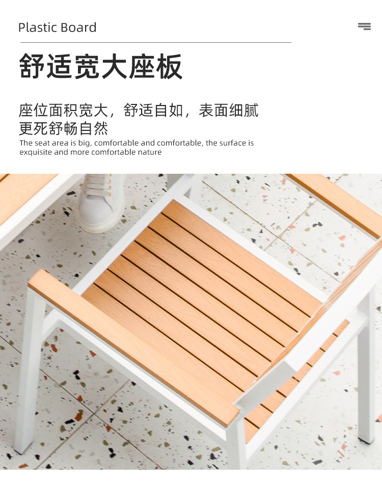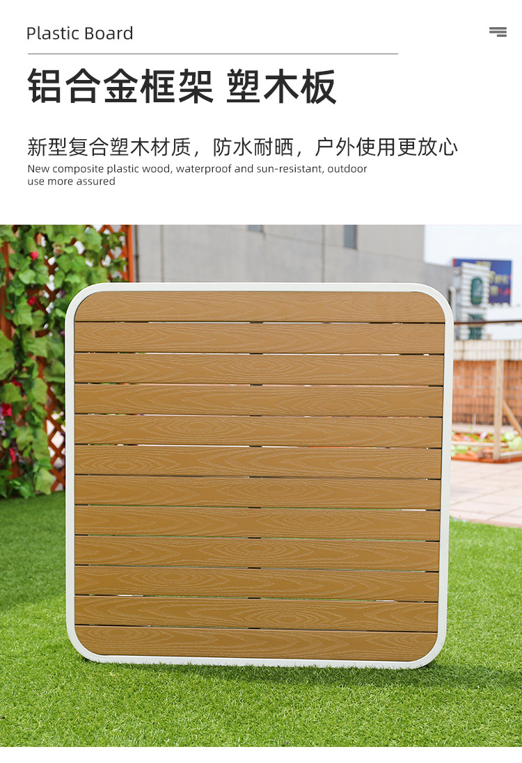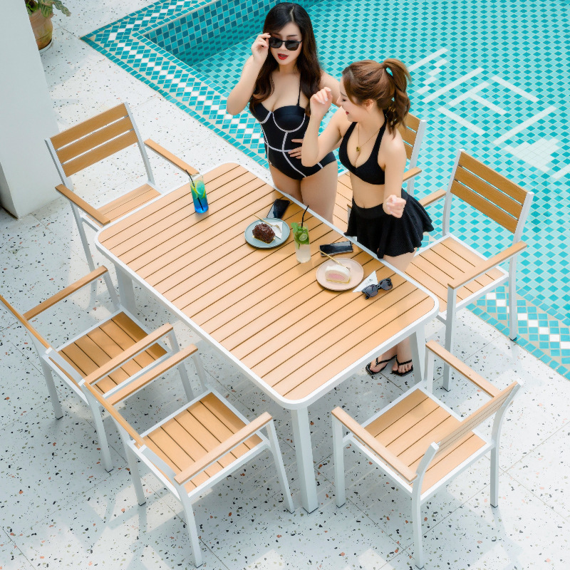 야외 플라스틱 나무 테이블과 의자 조합 안뜰 정원 발코니 야외 테라스 레저 공간 바베큐 차 식탁 의자