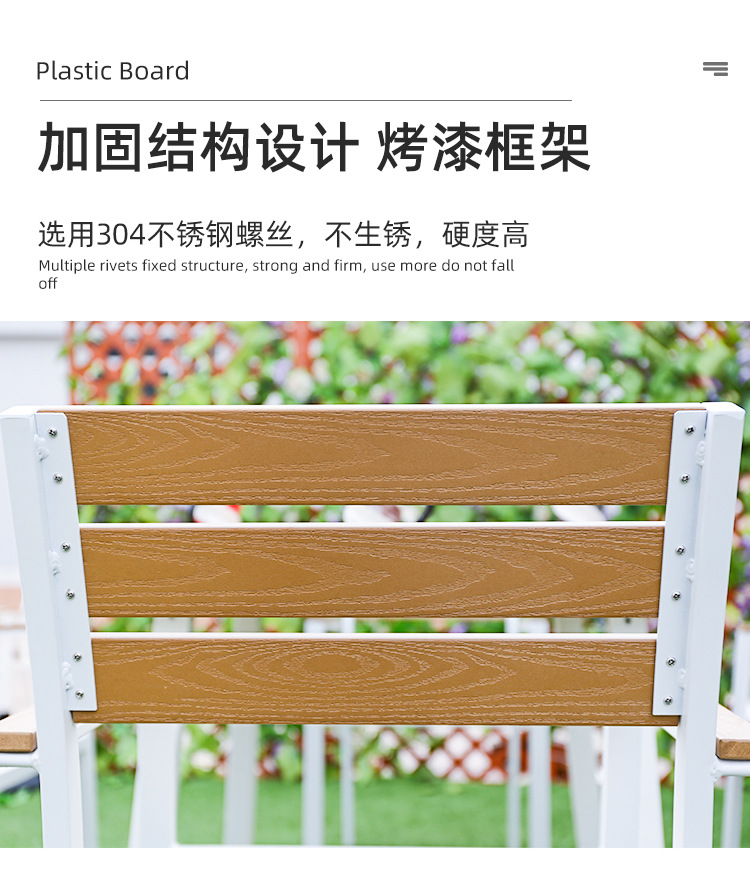 야외 플라스틱 나무 테이블과 의자 조합 안뜰 정원 발코니 야외 테라스 레저 공간 바베큐 차 식탁 의자스토어 가기