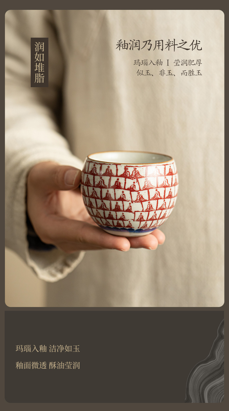 빈티지 루 가마 천 불상 둔황 싱글 컵 마스터 컵 오프닝 쿵푸 티 세트 홈 오피스 세라믹 차 시음 컵스토어 가기