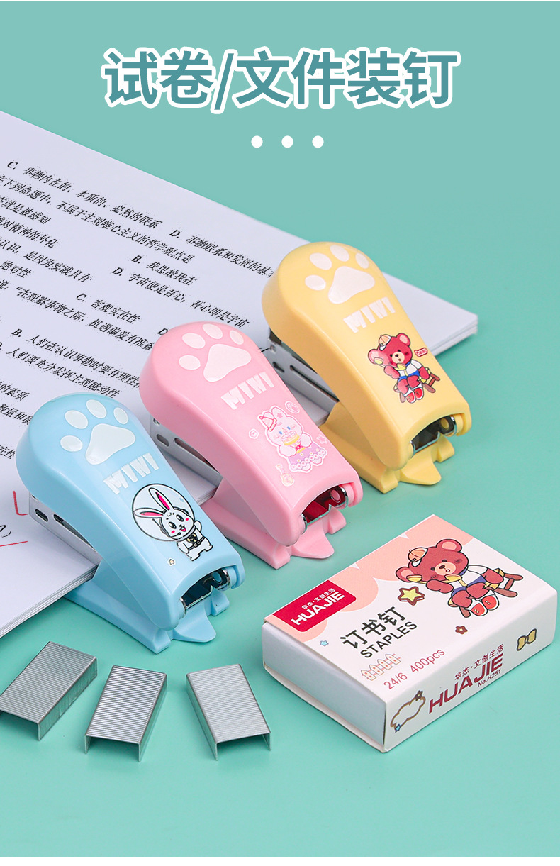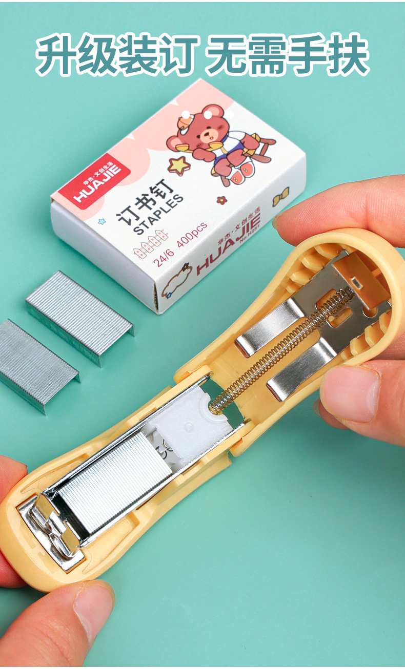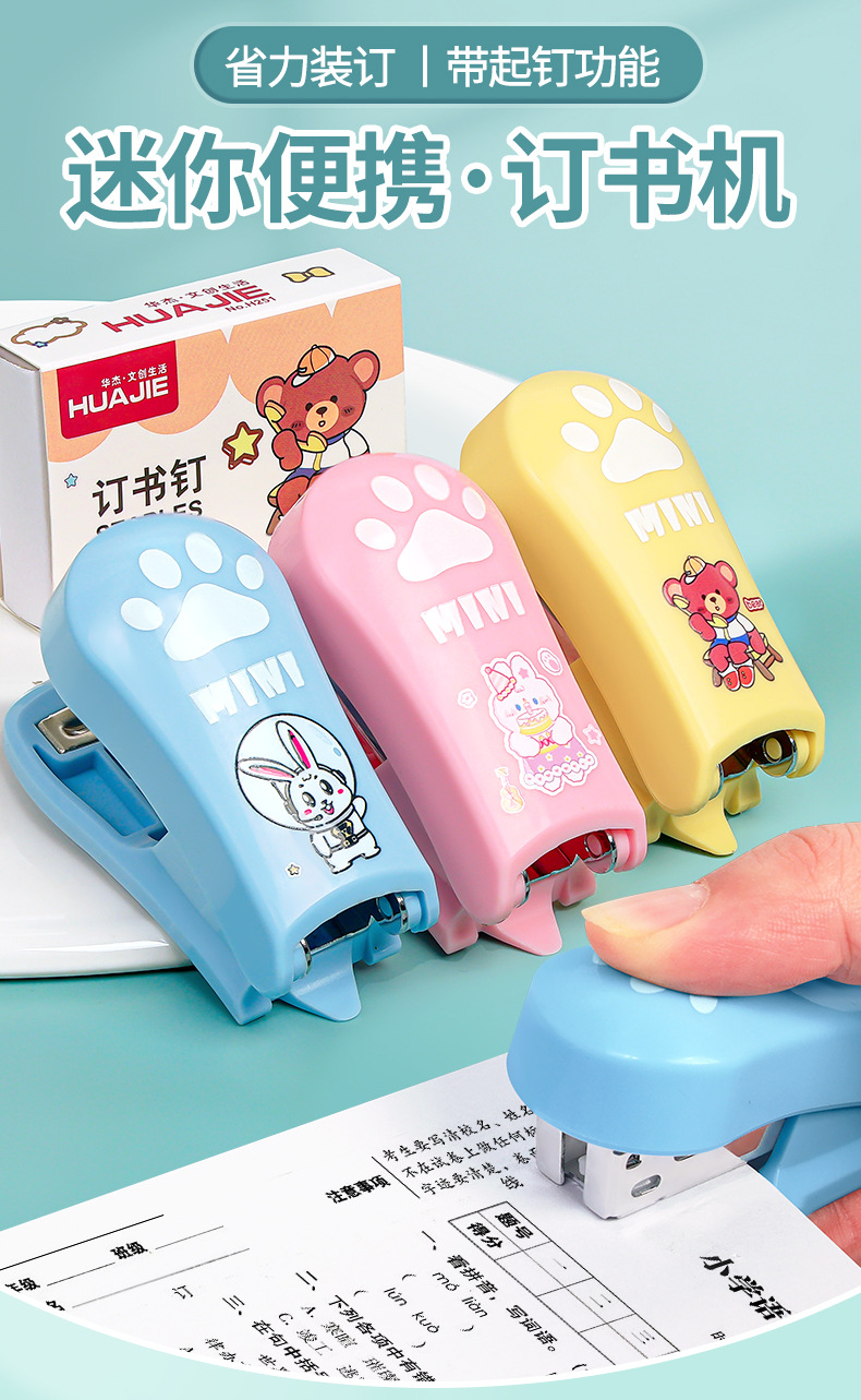 Huajie 미니 스테이플러 만화 노동 절약 스테이플러 테이크 어웨이 패킹 바인딩 머신 휴대용 스테이플러