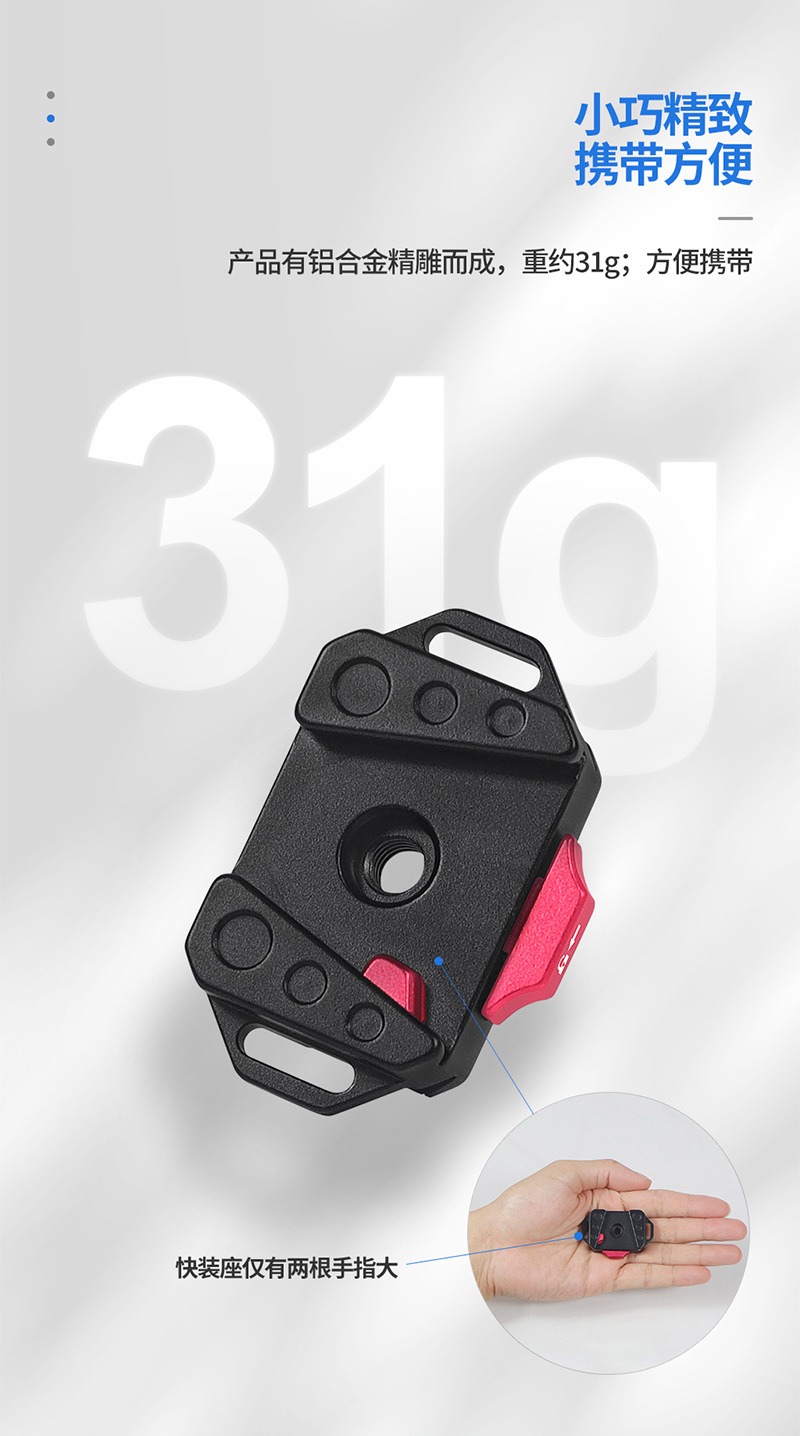 B. 通用38mm燕尾槽,适用市面上38mm阿卡快装夹,三脚架等,摄影拍摄快人一步;