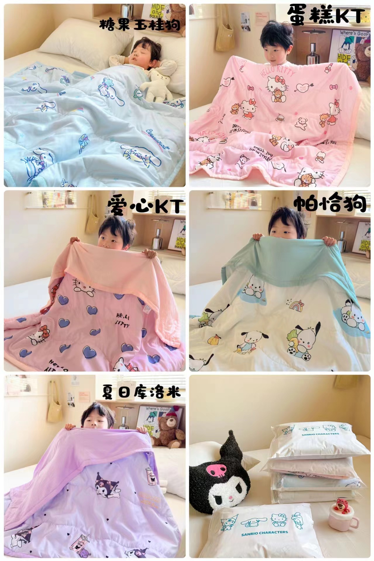 2025년 신형 산리오 워시드 코튼 어린이 이불 A급 만화 유치원 낮잠 이불 피부 친화적 에어컨 이불 도매스토어 가기
