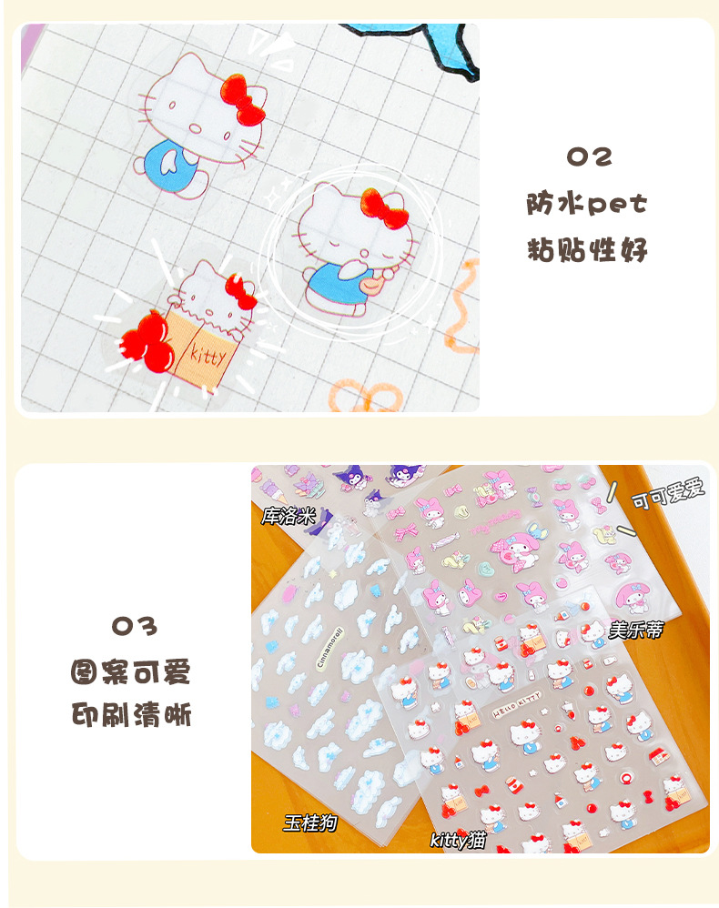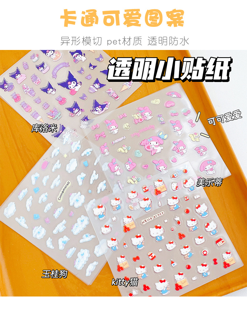 창조적 인 만화 산리오 PVC 스티커 소녀 Culomi 헬로 키티 어린이 손 계정 구 카드 스티커 물 컵스토어 가기