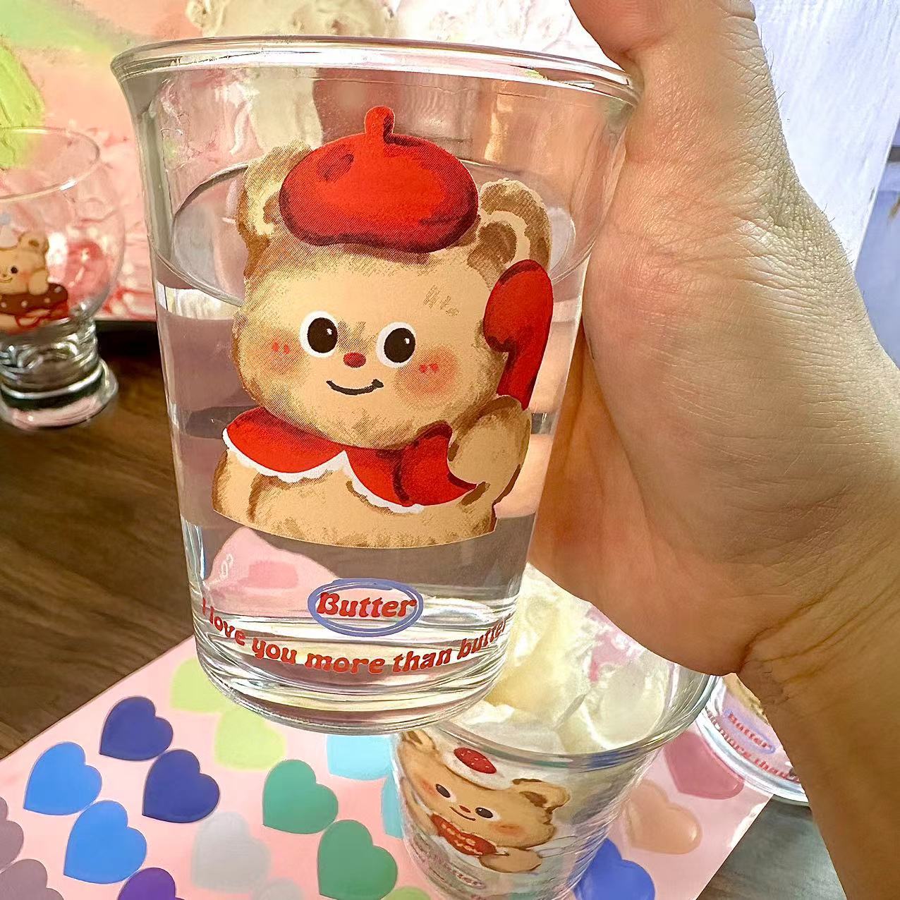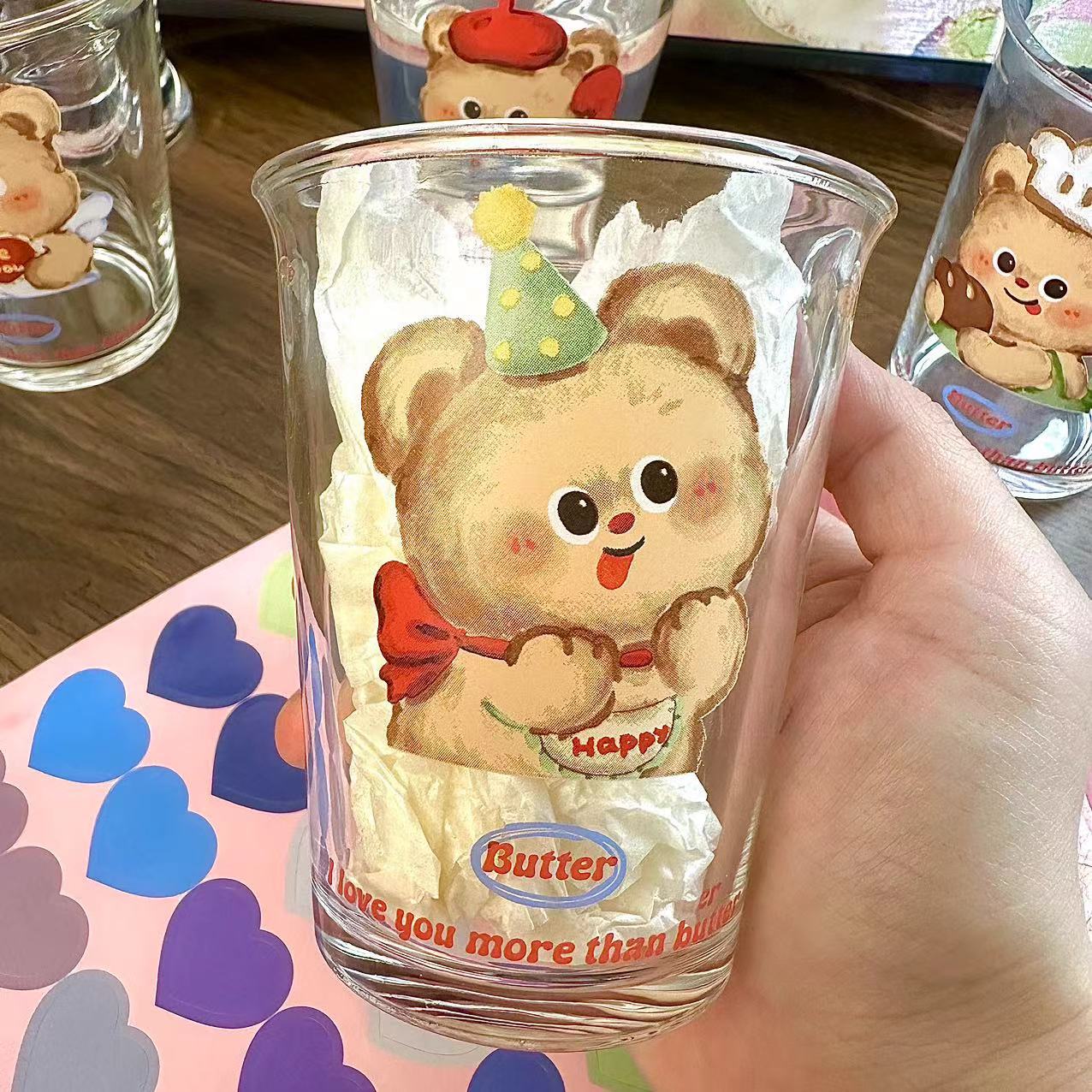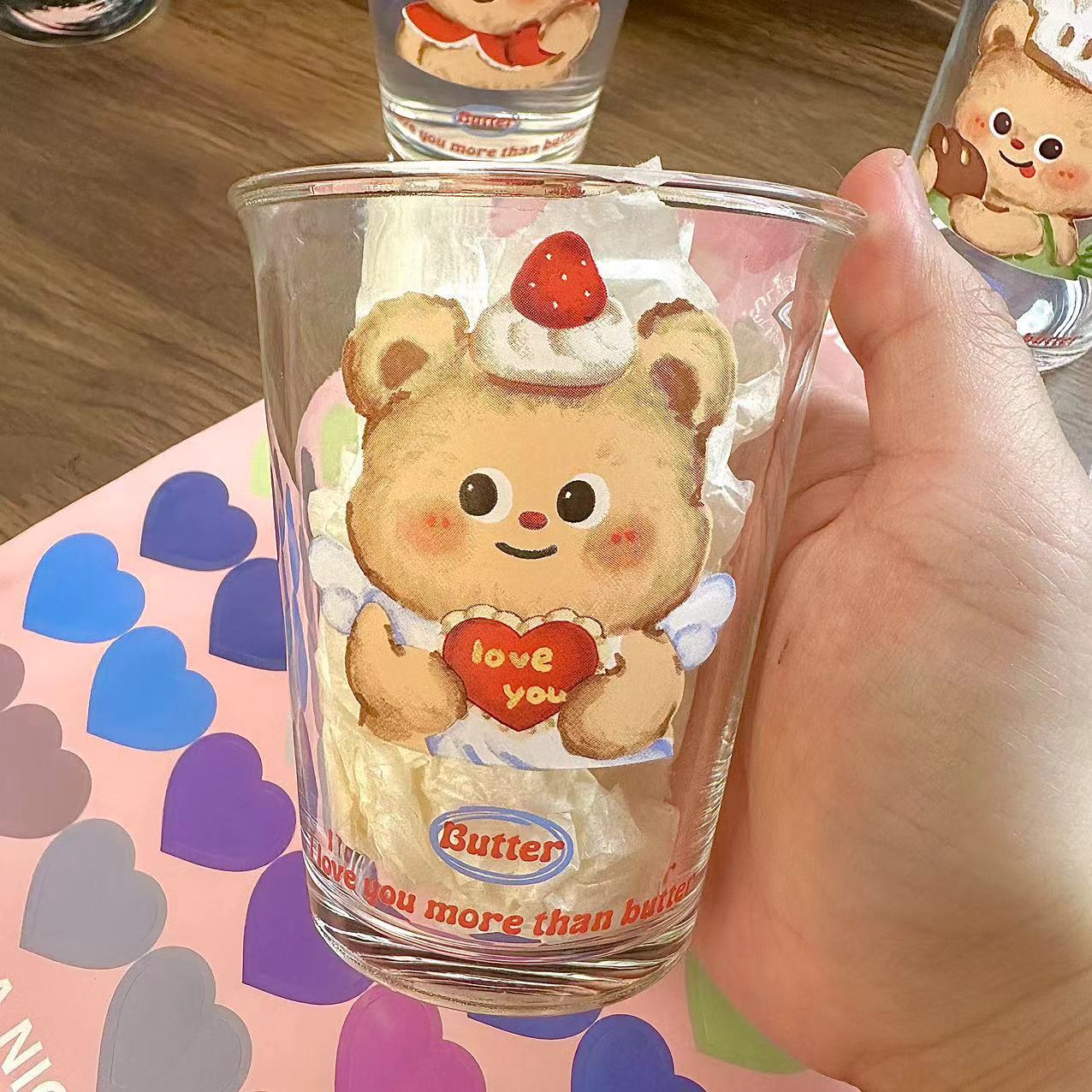 귀여운 만화 유리 버터 곰 요거트 오트밀 좋은 아침 식사 컵 과일 샐러드 아이스크림 컵스토어 가기