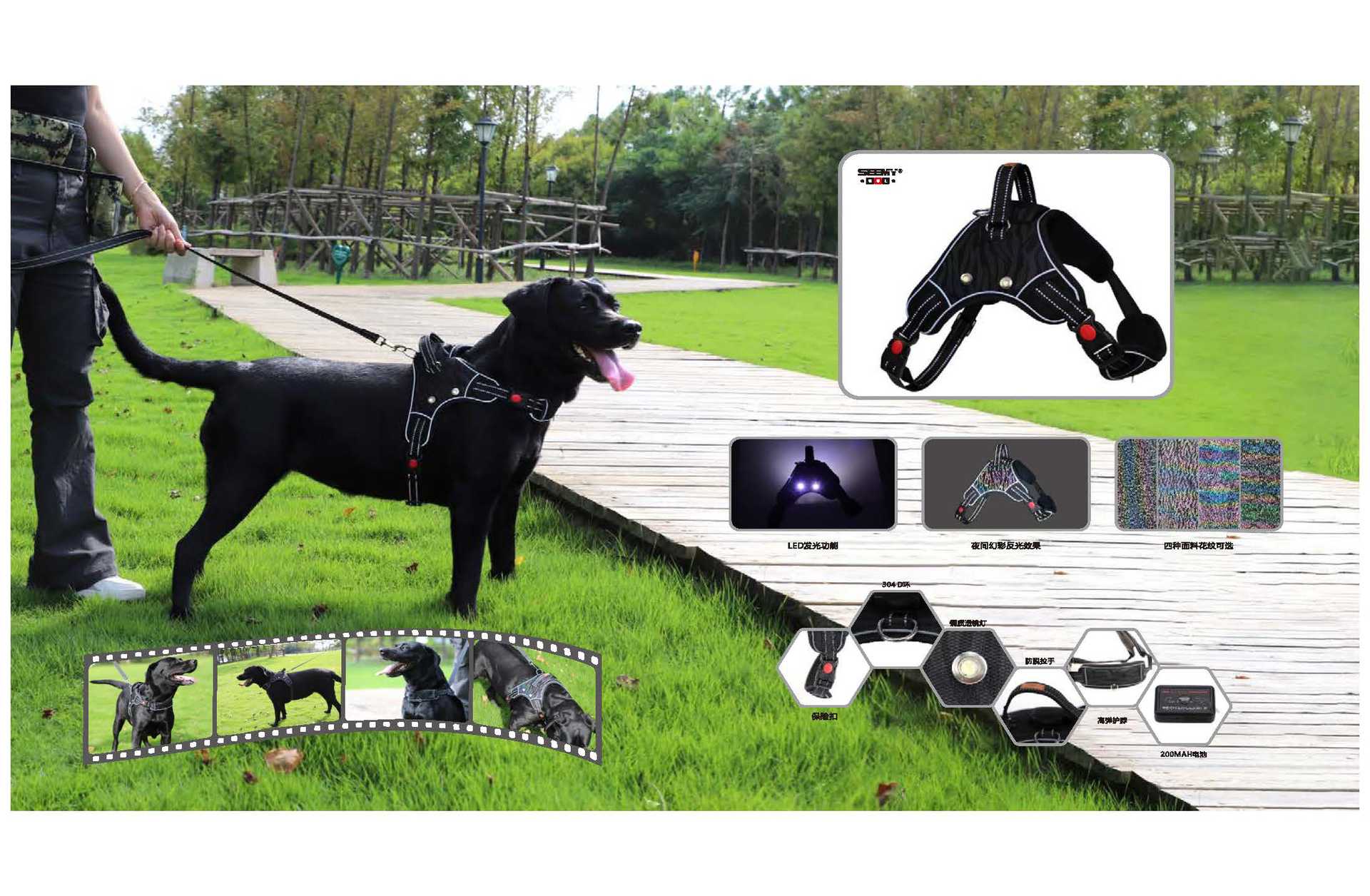 새로운 크로스보더 유연한 다색 반사 패턴 리드줄, 약간 신축성 있는 강아지 애완동물 목줄 안전 버클스토어 가기