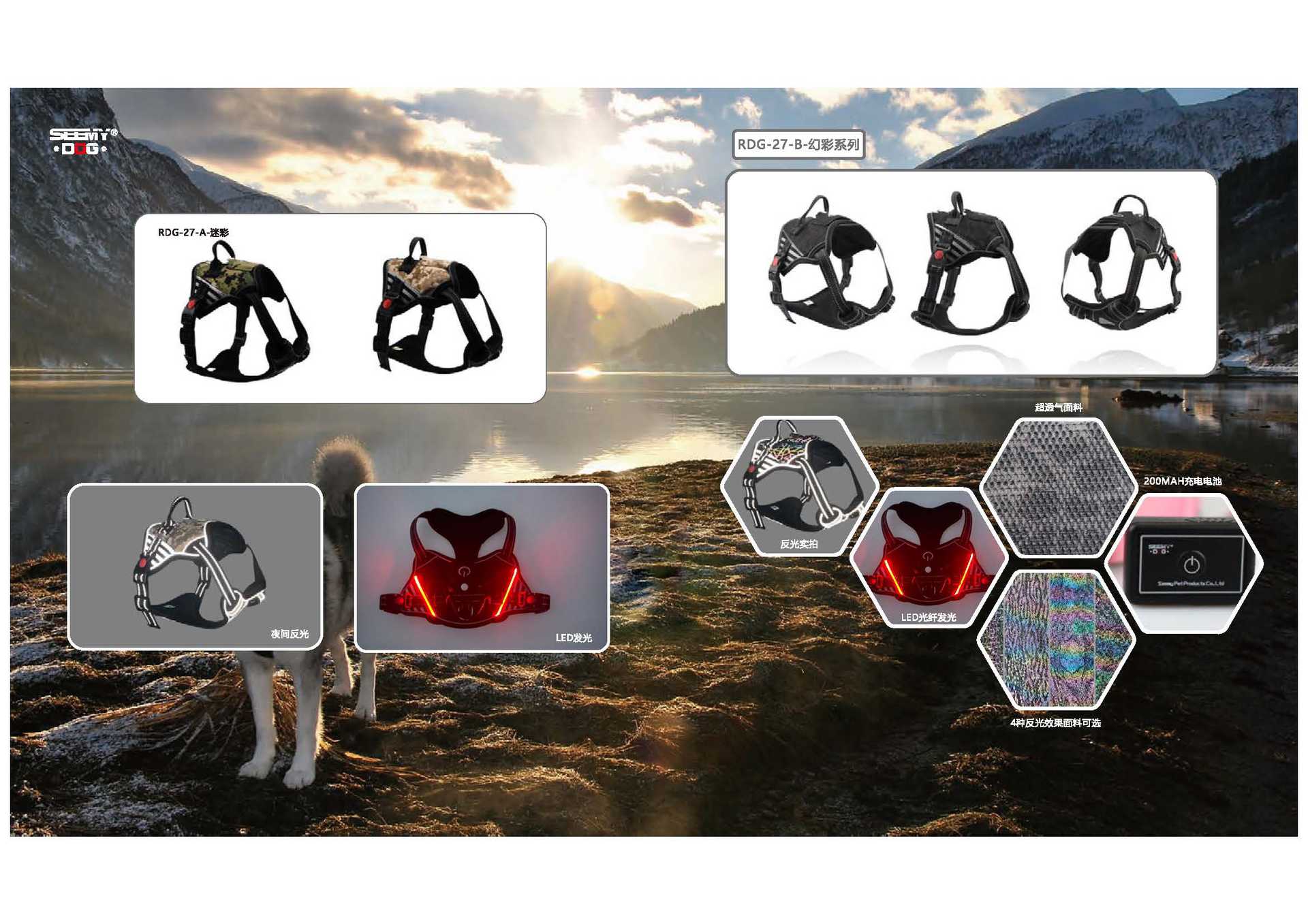 새로운 크로스보더 유연한 다색 반사 패턴 리드줄, 약간 신축성 있는 강아지 애완동물 목줄 안전 버클