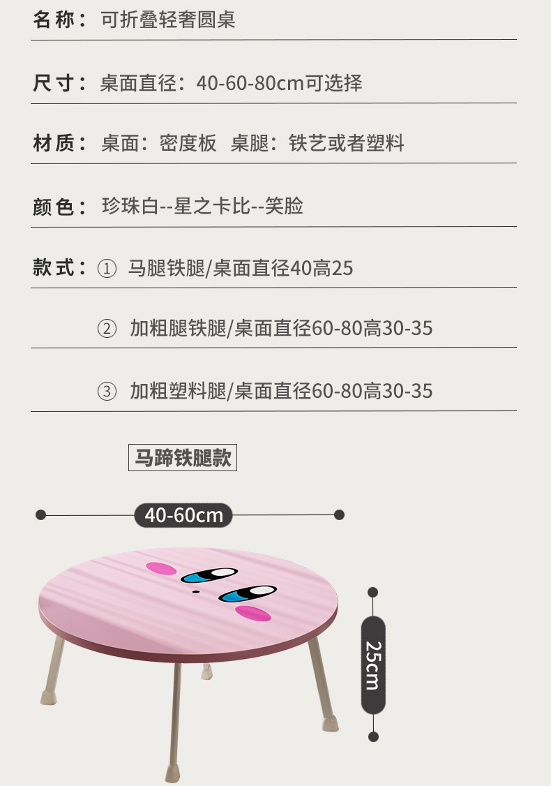• 꾸준한 철제 다리/30 높이/60 라운드 (웃는 얼굴)