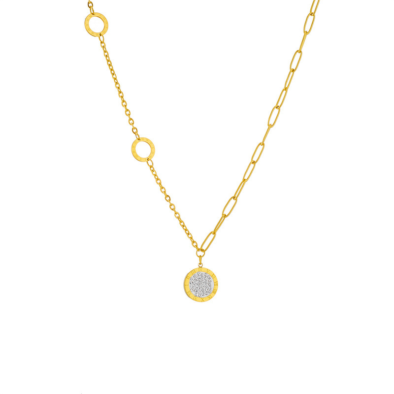 티타늄 스틸 비 페이딩 목걸이 로마 숫자 전체 다이아몬드 간단한 성격 유럽과 미국 스타일 패션 올 매치 쇄골 체인 여성스토어 가기