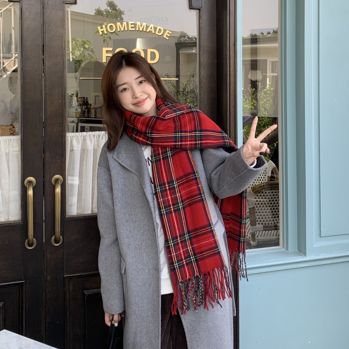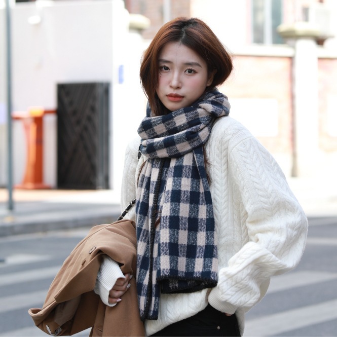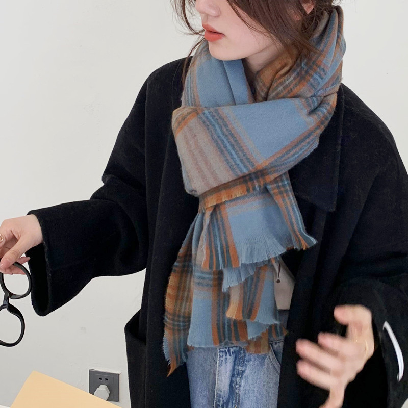2025 신상 메일라드 울 스카프 여성용 가을 겨울 한국 스타일 다용도 체크무늬 숄 커플용 목도리 남성용 보온스토어 가기