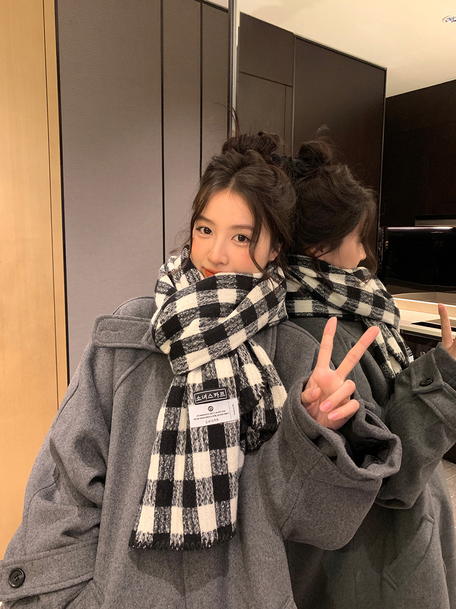 2025 신상 메일라드 울 스카프 여성용 가을 겨울 한국 스타일 다용도 체크무늬 숄 커플용 목도리 남성용 보온