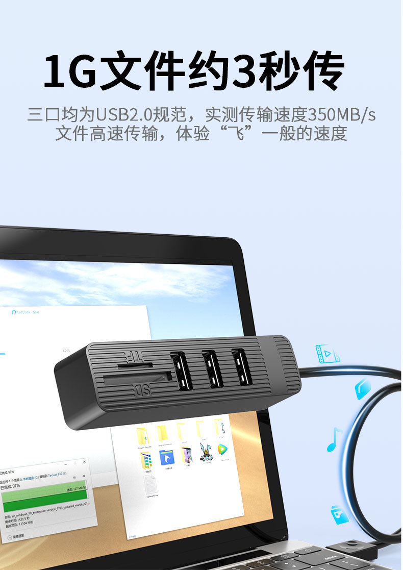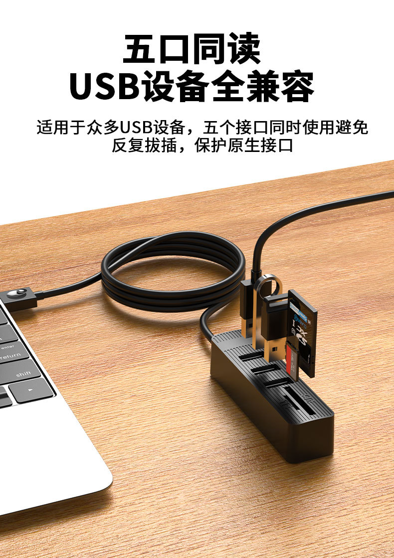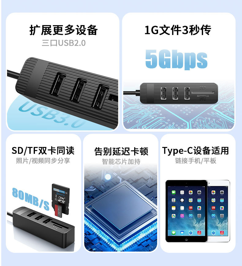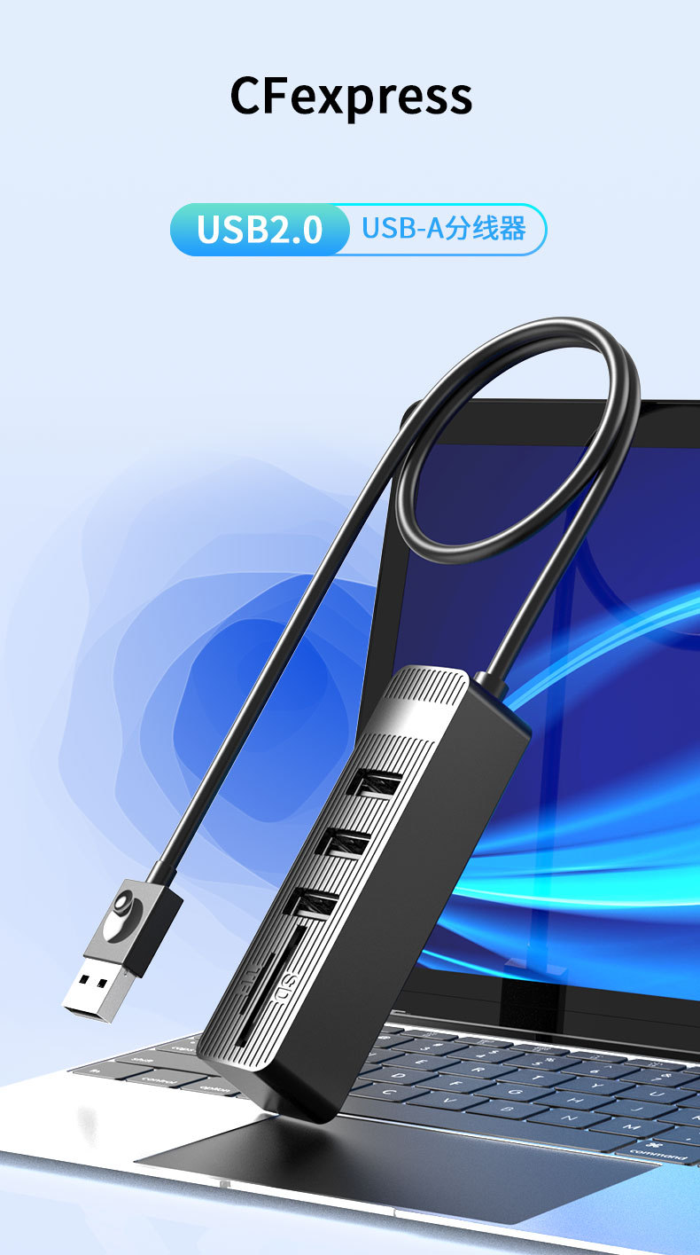 USB2.0hub 허브 다기능 콤보 카드 리더기 SDTF 슬롯 도킹 스테이션이 있는 usb2.0 분배기스토어 가기