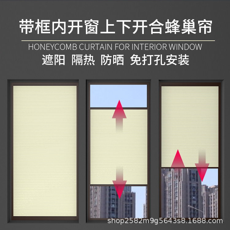 프레임 구멍이 뚫린 인라인 벌집 커튼 작은 도마뱀 붙이 위아래로 밀고 당기는 차양 열 단열재가있는 도매 내부 열린 창 내부 거꾸로 된 창스토어 가기