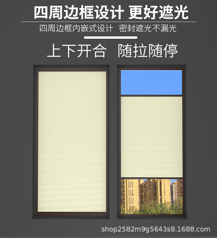 프레임 구멍이 뚫린 인라인 벌집 커튼 작은 도마뱀 붙이 위아래로 밀고 당기는 차양 열 단열재가있는 도매 내부 열린 창 내부 거꾸로 된 창