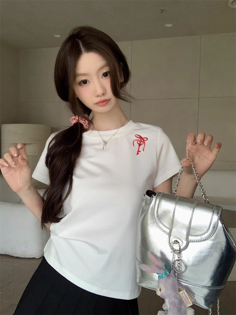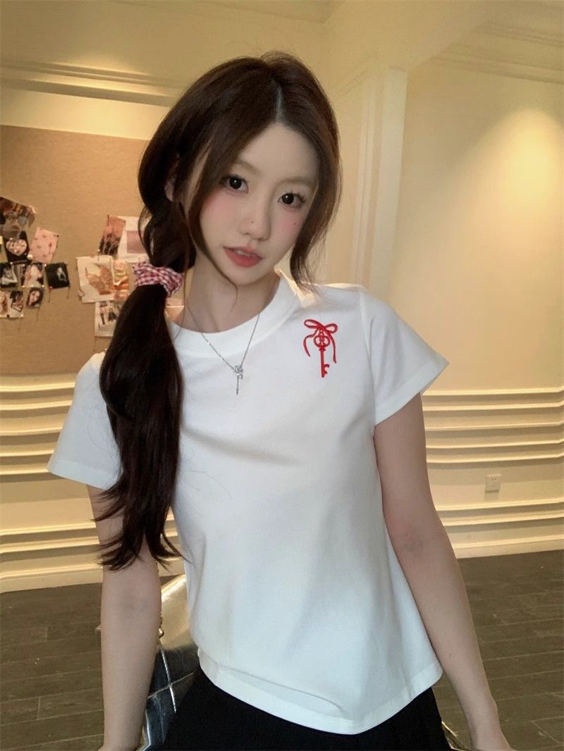 화이트 숄더 반팔 티셔츠 여성용 여름 새 도착 활 수 놓은 쇼트 탑 스파이스 걸스베이스 셔츠