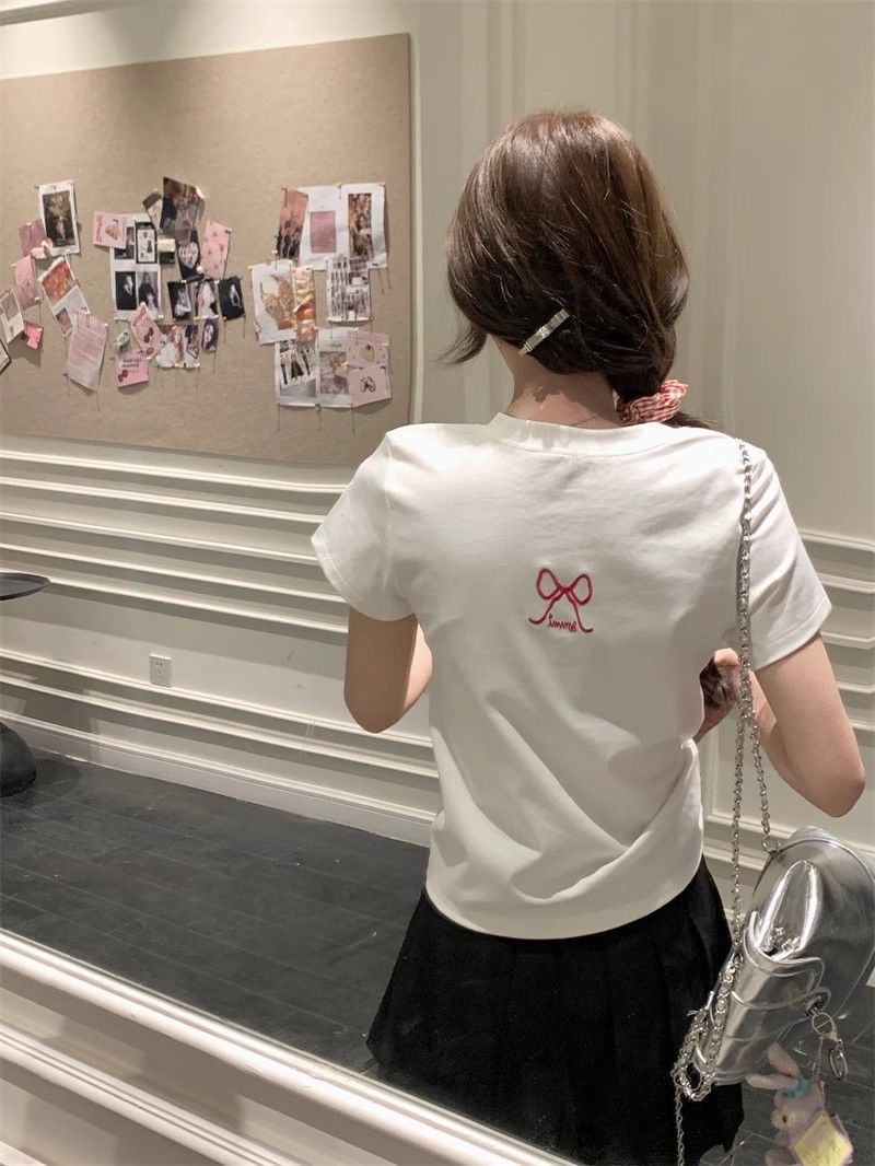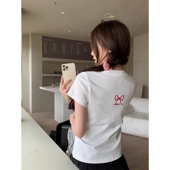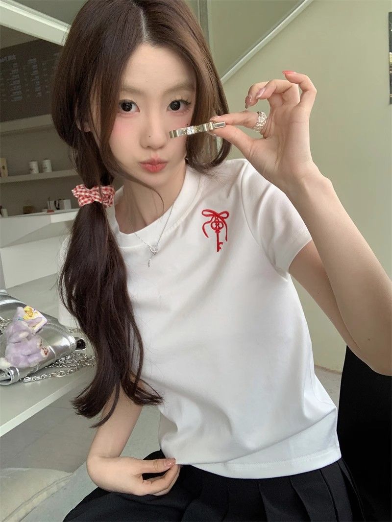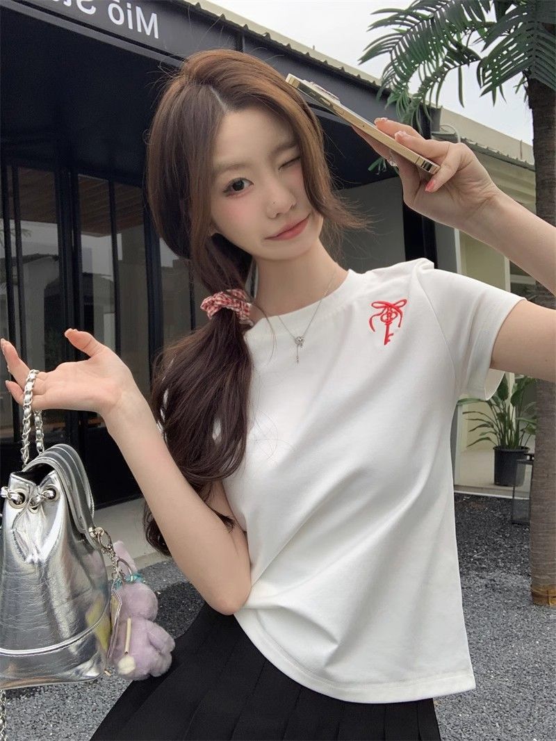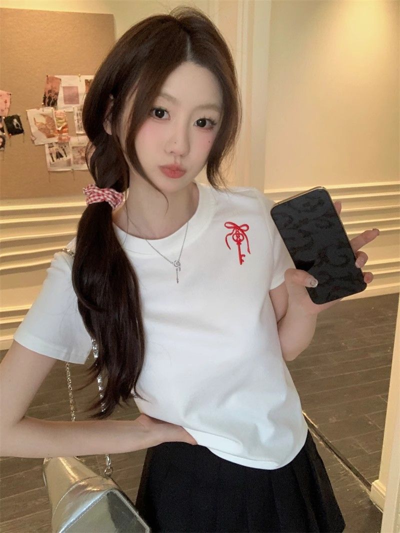 화이트 숄더 반팔 티셔츠 여성용 여름 새 도착 활 수 놓은 쇼트 탑 스파이스 걸스베이스 셔츠스토어 가기