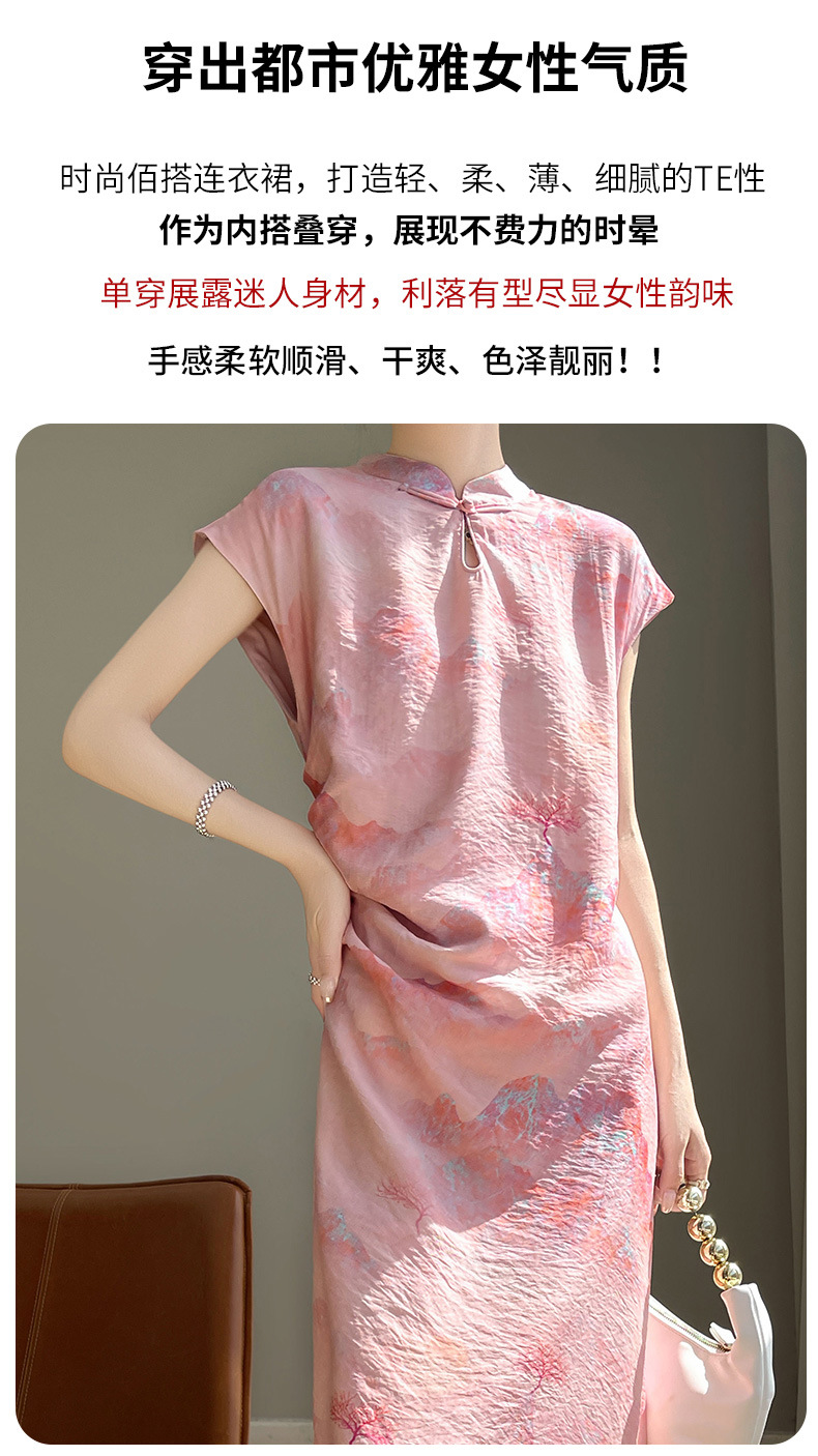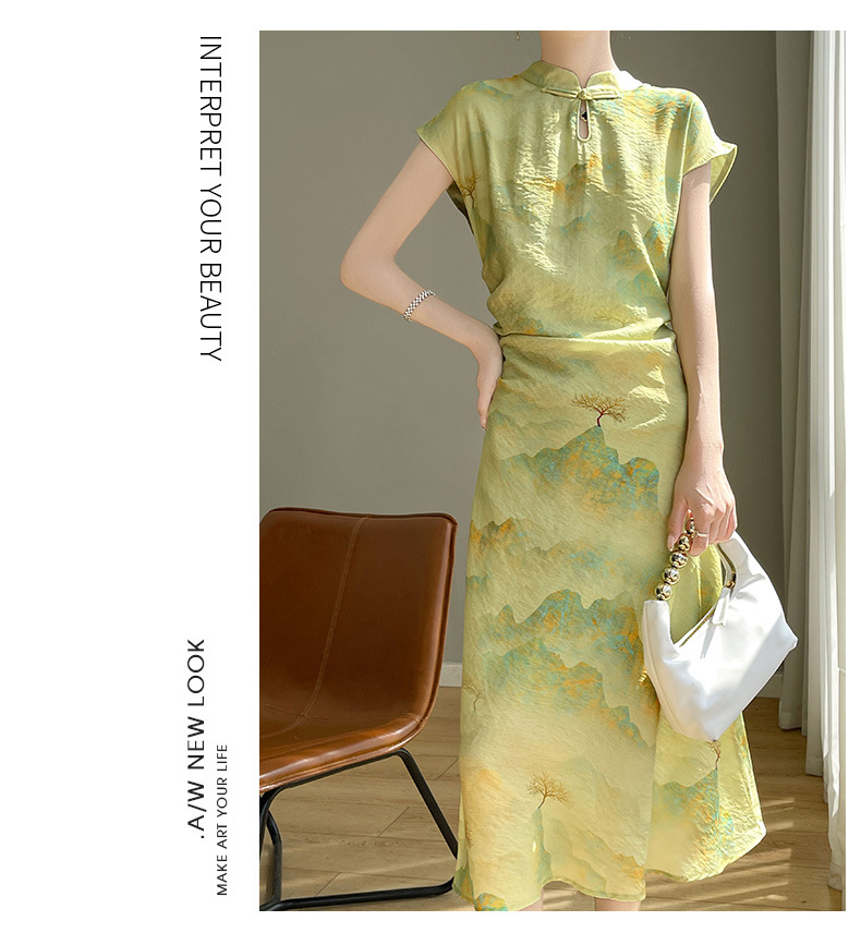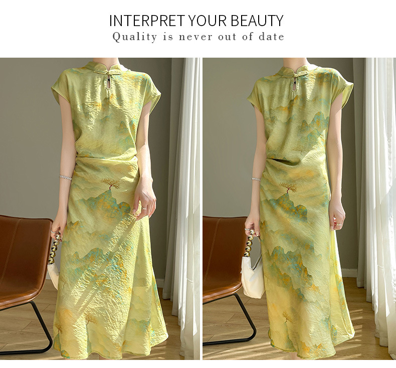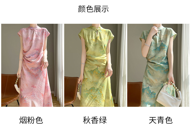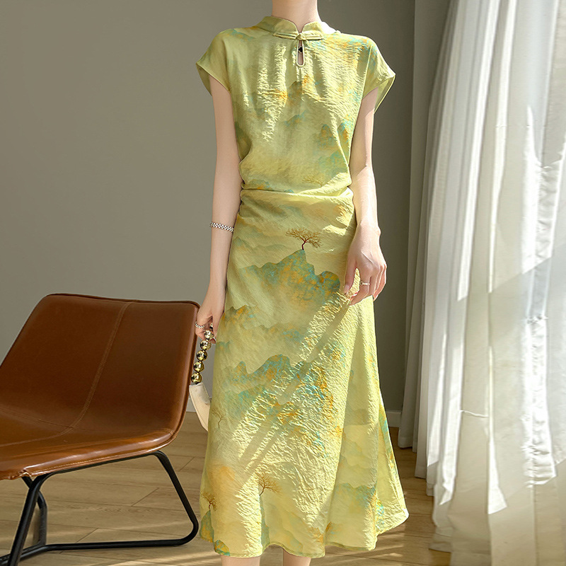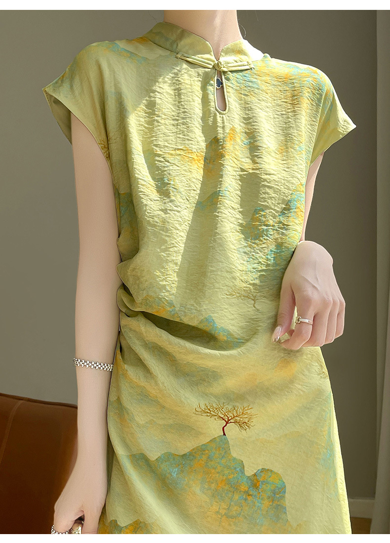 빈티지 새로운 중국 스타일 Tancel 코튼 원피스 여성 하이 엔드 스타일 수직 칼라 버클 내셔널 스타일 인쇄 중간 길이베이스 원피스스토어 가기