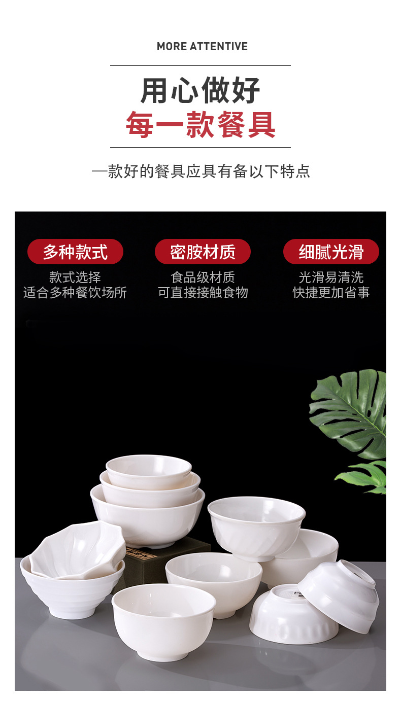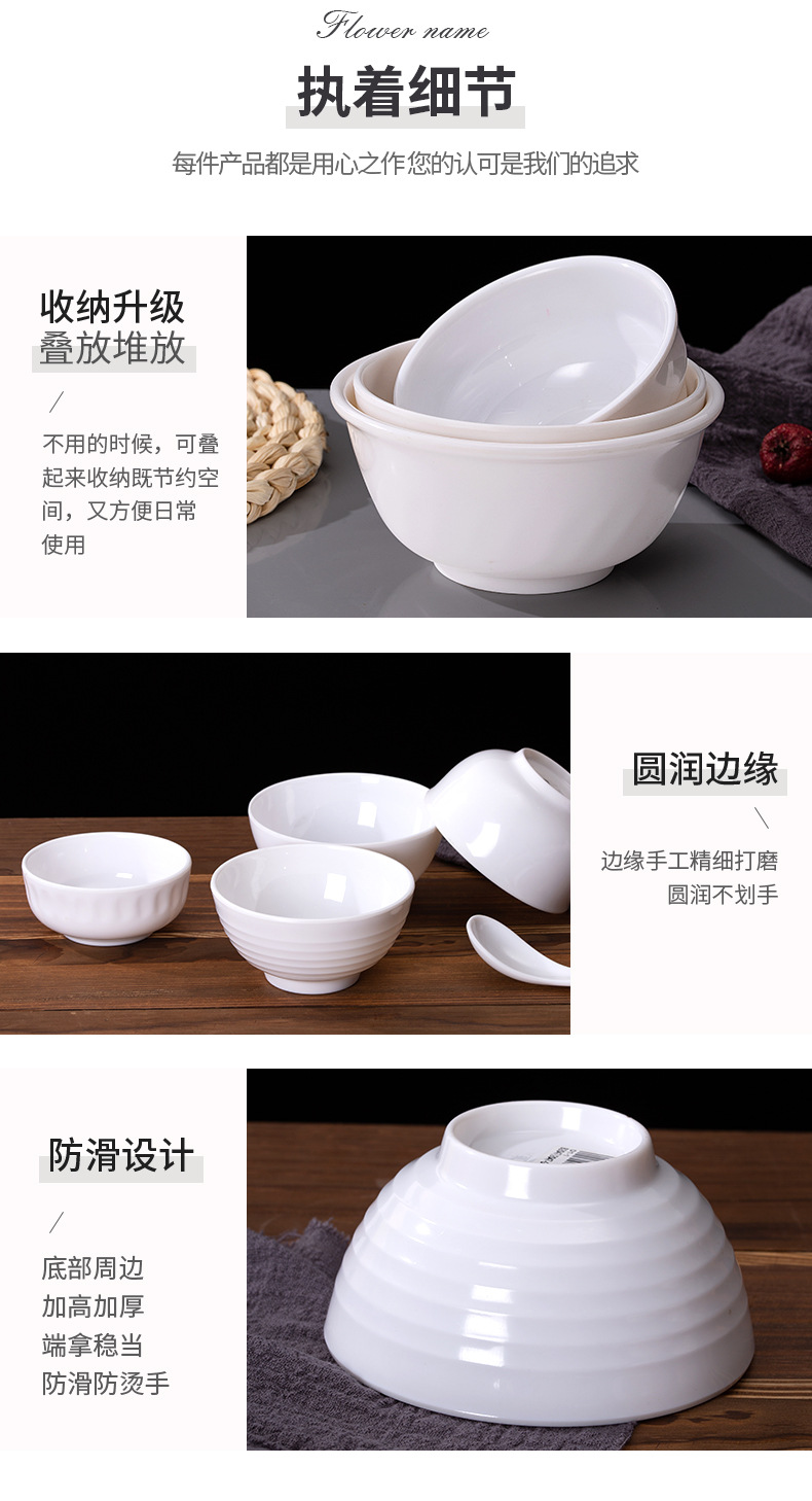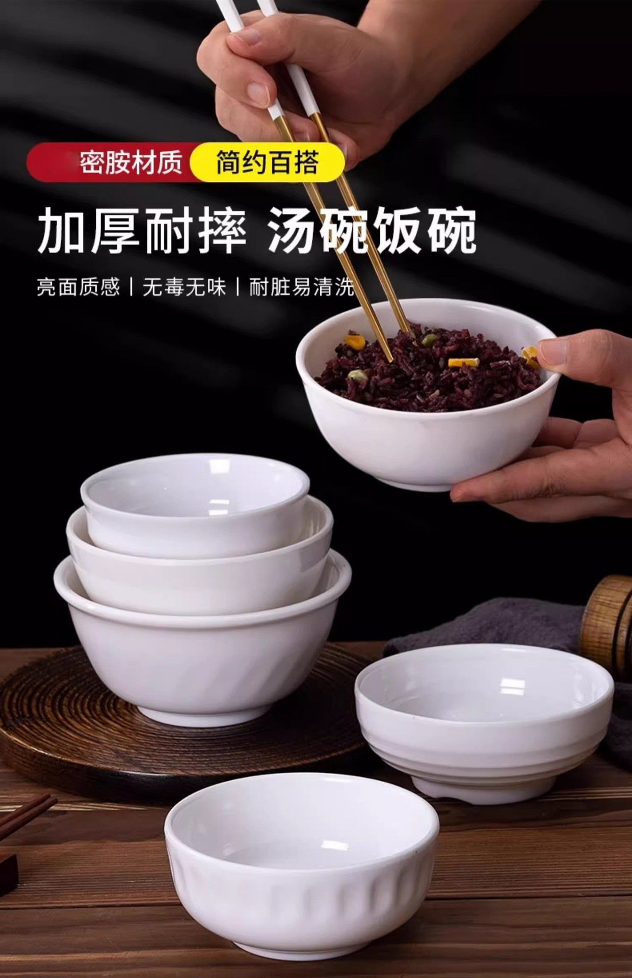 50 개의 흰색 작은 그릇 상업용 멜라민 패스트 푸드 레스토랑 플라스틱 수프 그릇 매점 레스토랑 밥 그릇 냄비 조미료 그릇스토어 가기