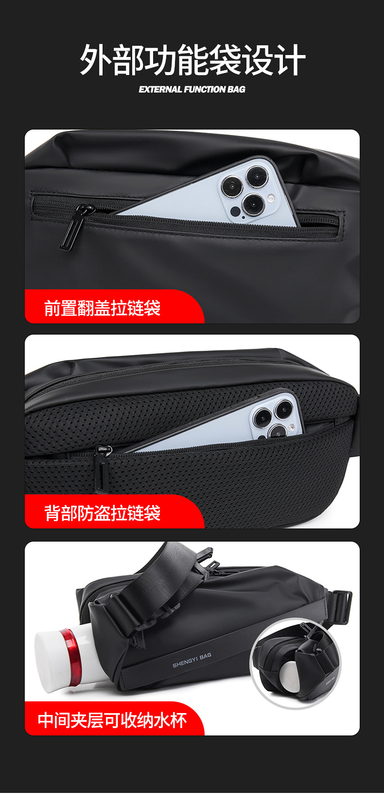 크로스 바디 가방 남자의 다기능 숨겨진 자기 기능 사이클링 가슴 가방 대용량 유행 허리 가방 작은 어깨 가방스토어 가기