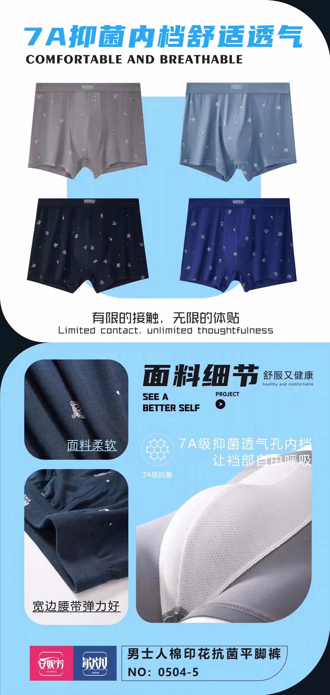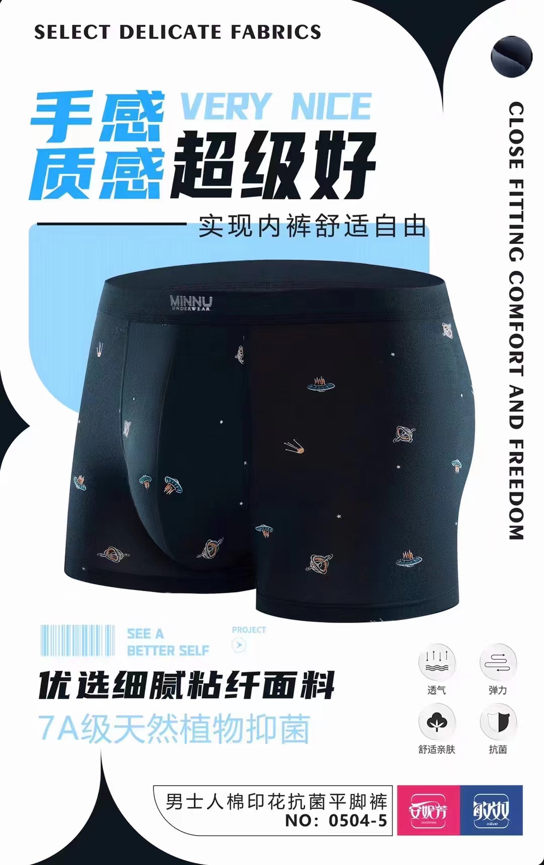 Minnu 7A 식물 세균성 남성면 인쇄 플랫 바지 중간 허리 통기성 비스코스 박스 반바지 중산 속옷