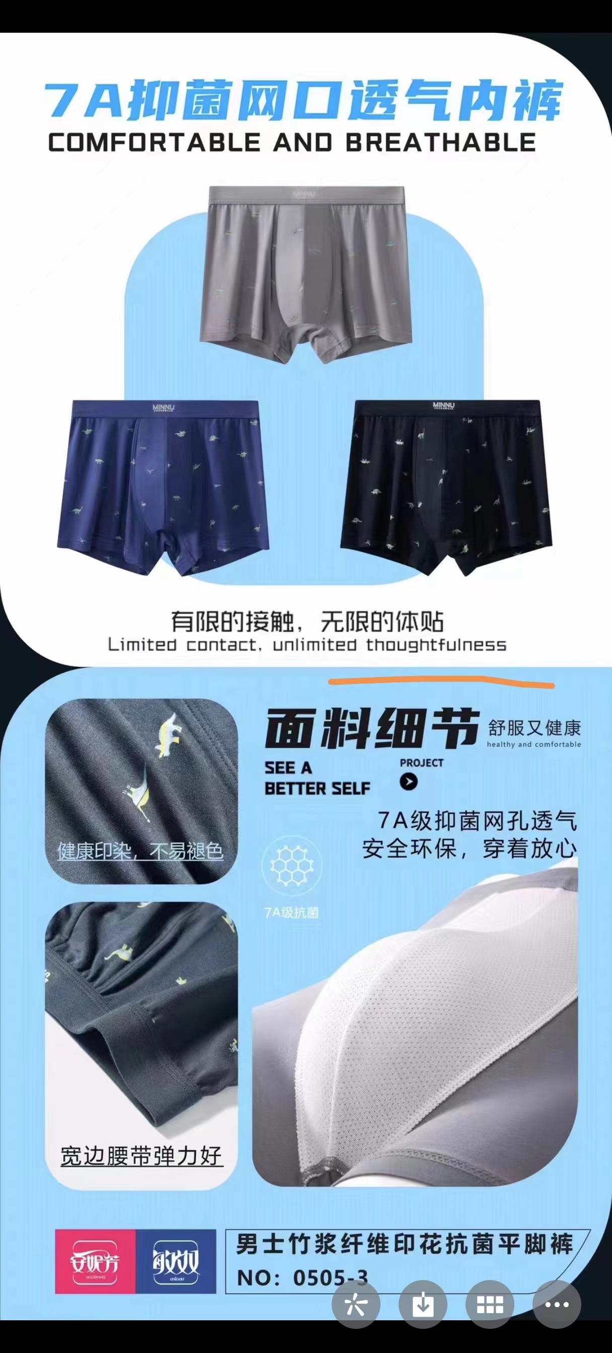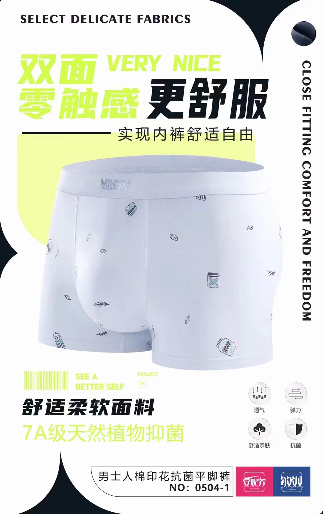 Minnu 7A 식물 세균성 남성면 인쇄 플랫 바지 중간 허리 통기성 비스코스 박스 반바지 중산 속옷스토어 가기