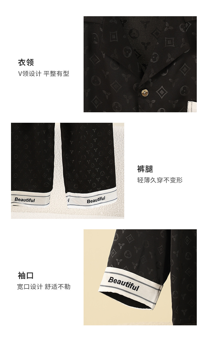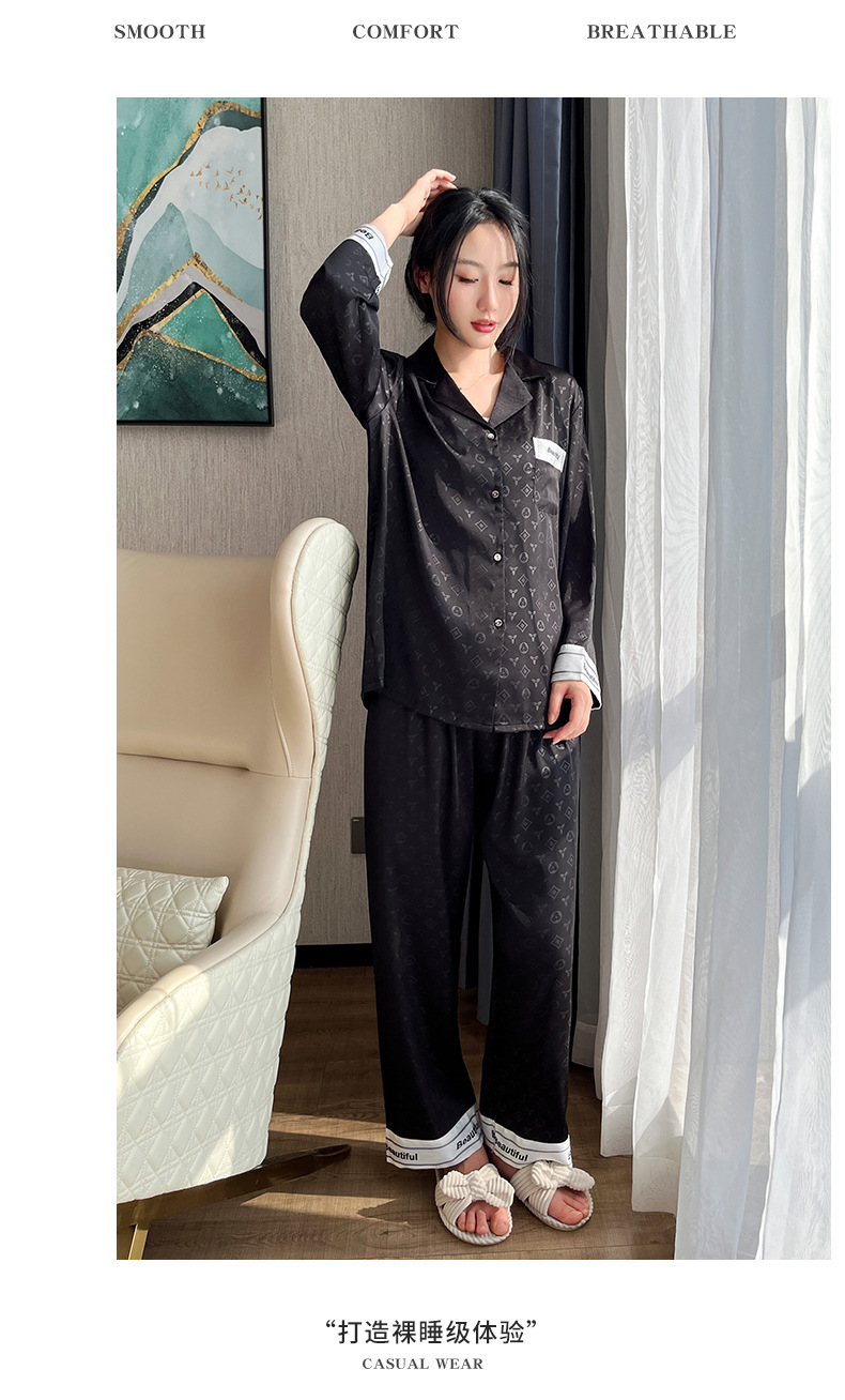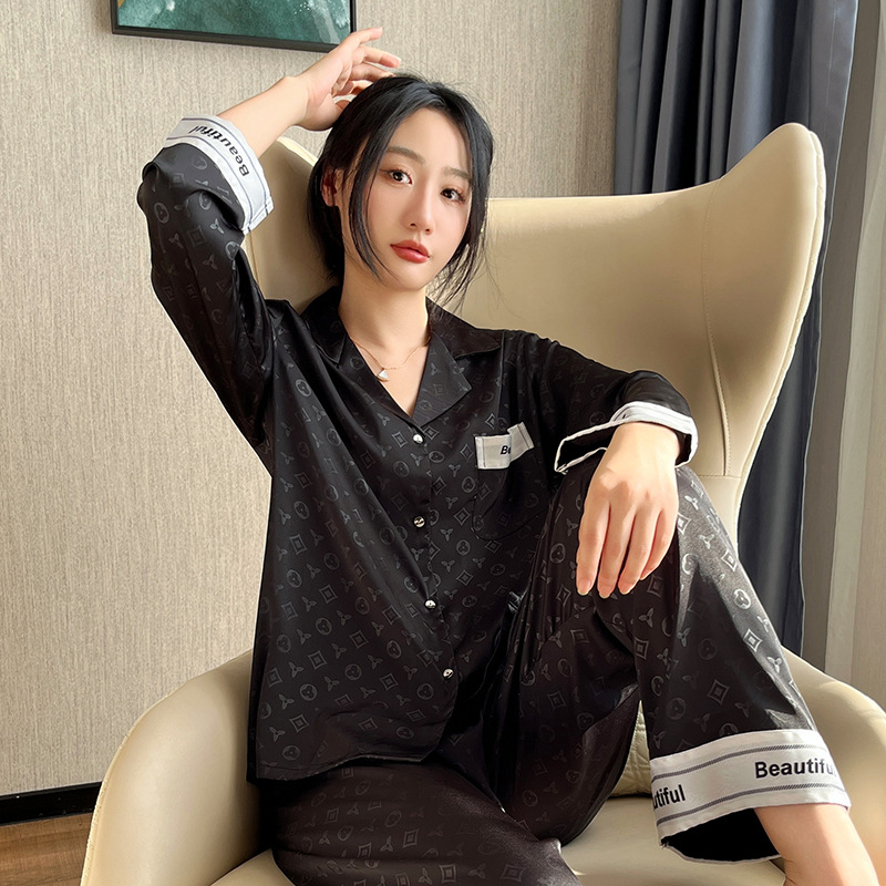 새로운 도착 블랙 커플 잠옷 여성의 봄과 가을 아이스 실크 긴팔 모방 실크 여름 홈 의류 빅 브랜드 스타일 남성 세트스토어 가기