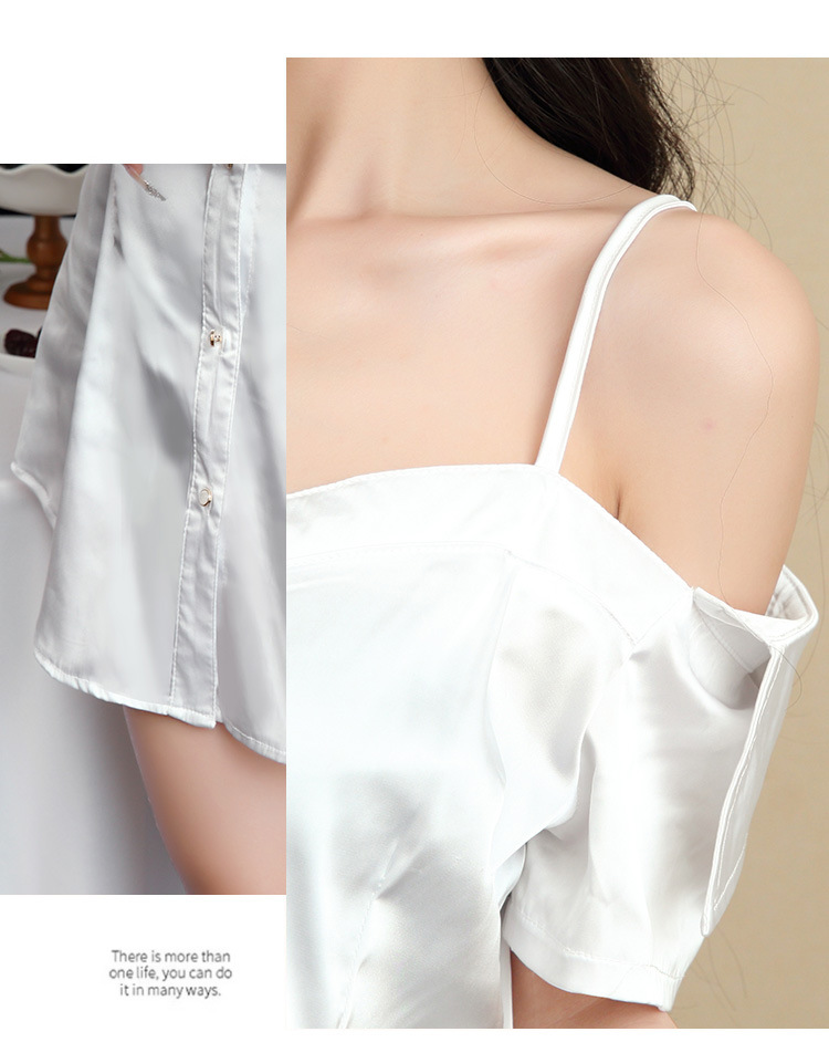 긴 셔츠 2024 새로운 슬림 핏 슬리밍 세련된 서양식 우아한 반팔 엉덩이 커버 여성용 셔츠 5358