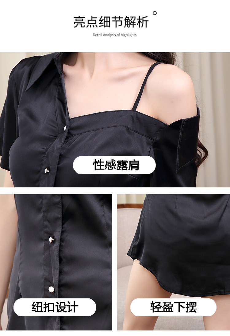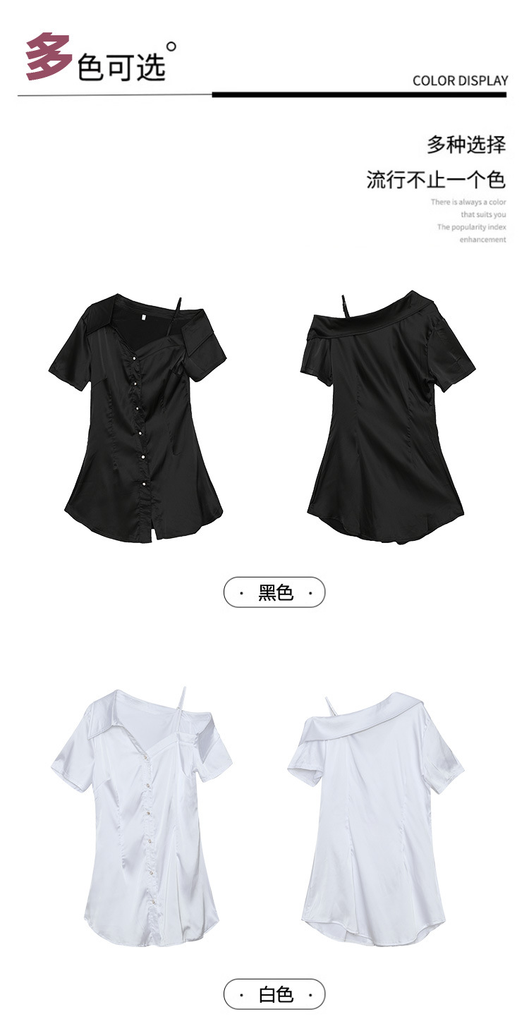 긴 셔츠 2024 새로운 슬림 핏 슬리밍 세련된 서양식 우아한 반팔 엉덩이 커버 여성용 셔츠 5358스토어 가기