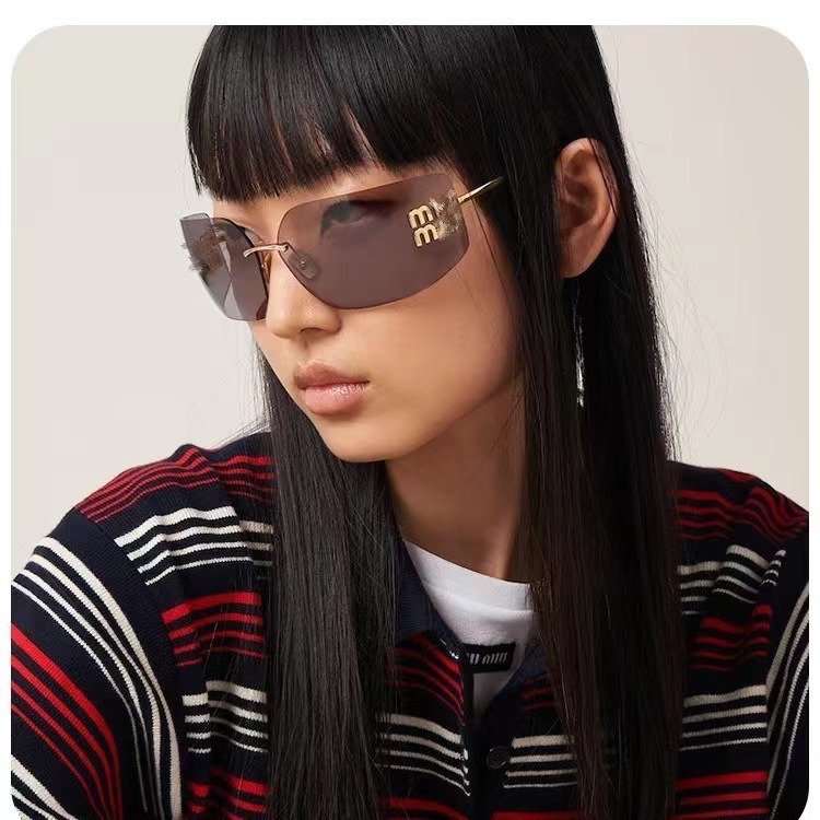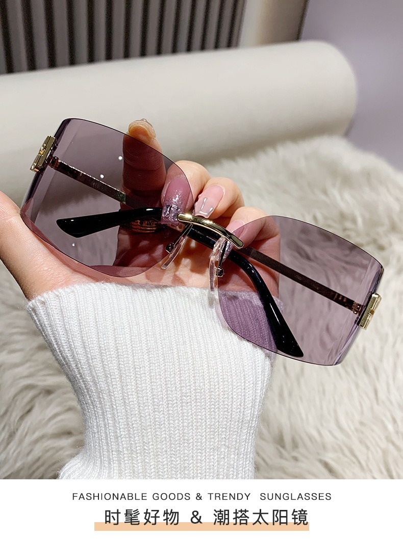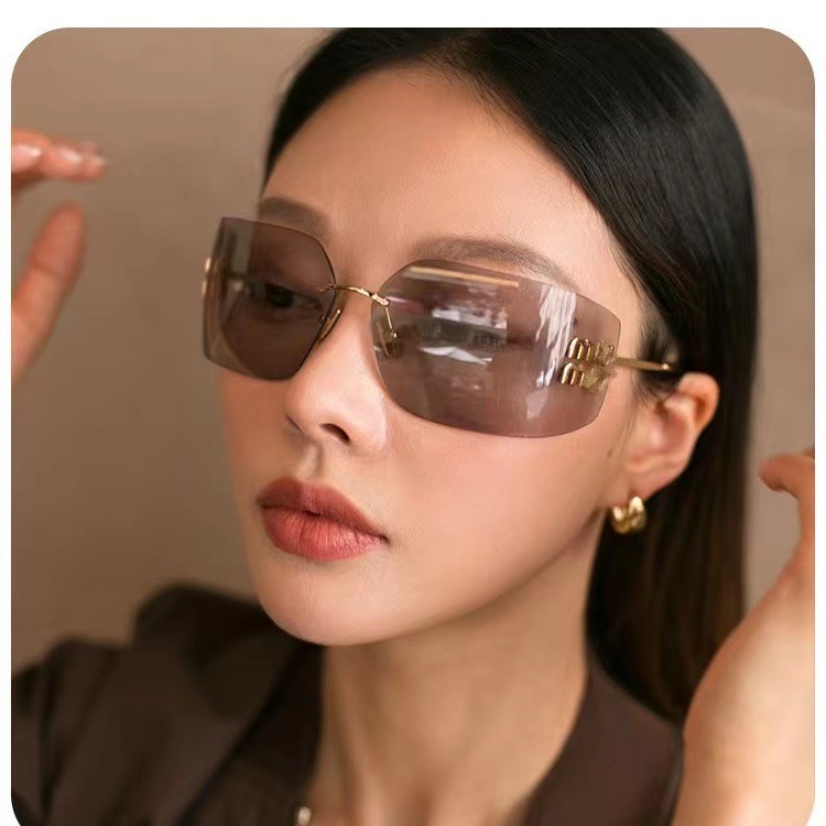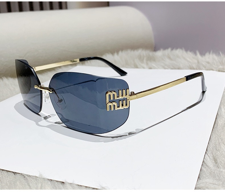장원영과 같은 스타일의 여성용 대형 선글라스, 고급 y2k 곡면 일체형 선글라스, 프레임리스 컷엣지 선글라스스토어 가기