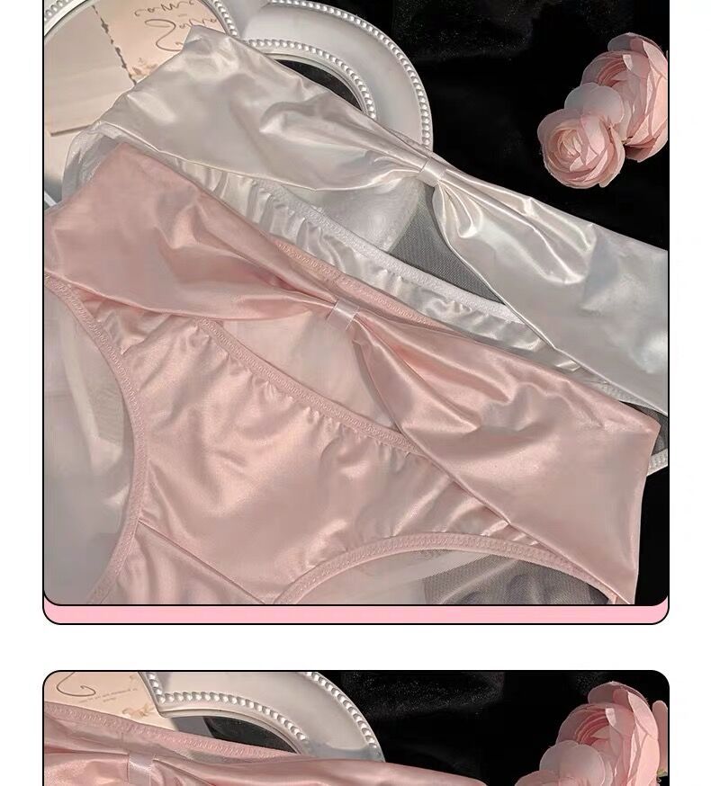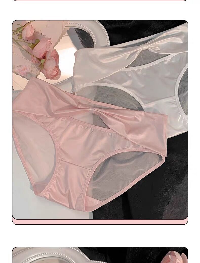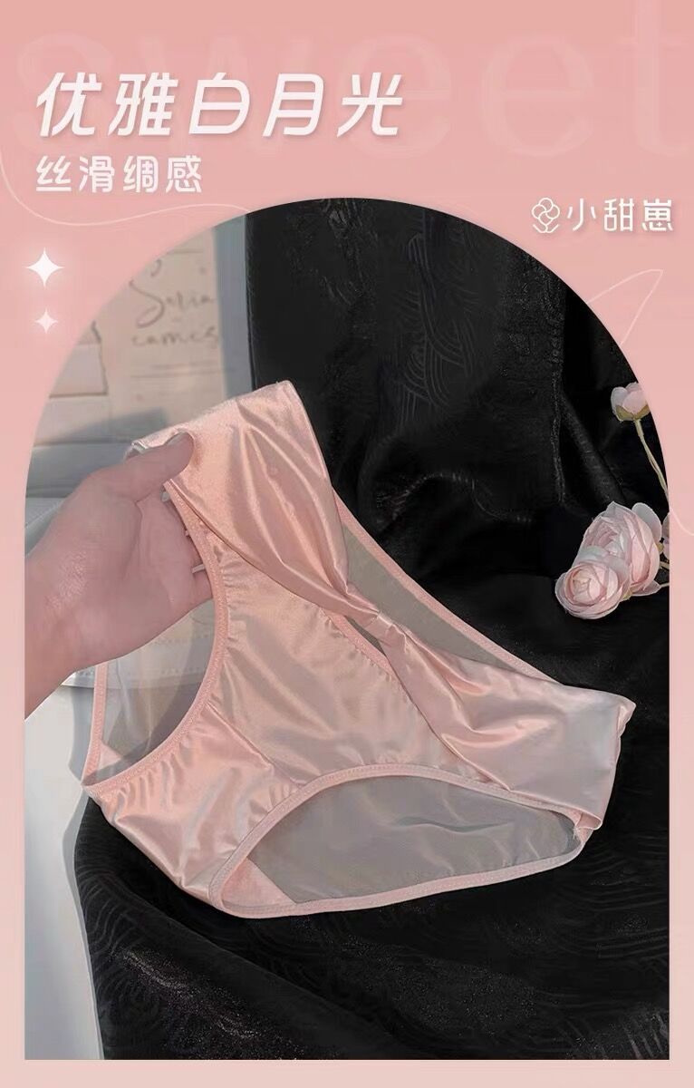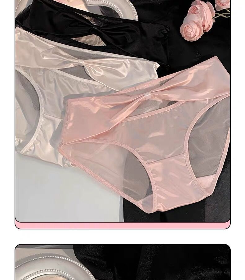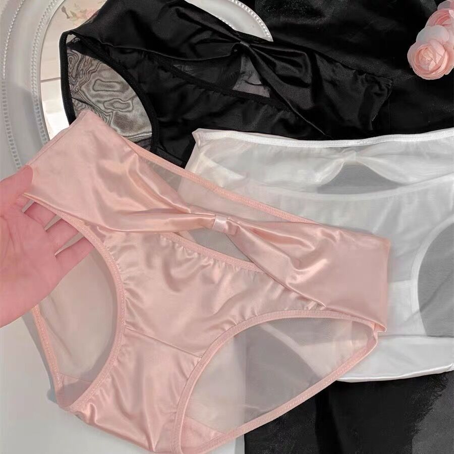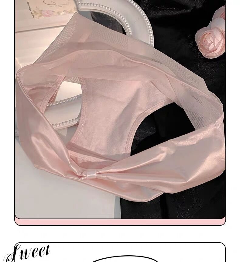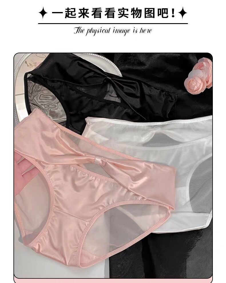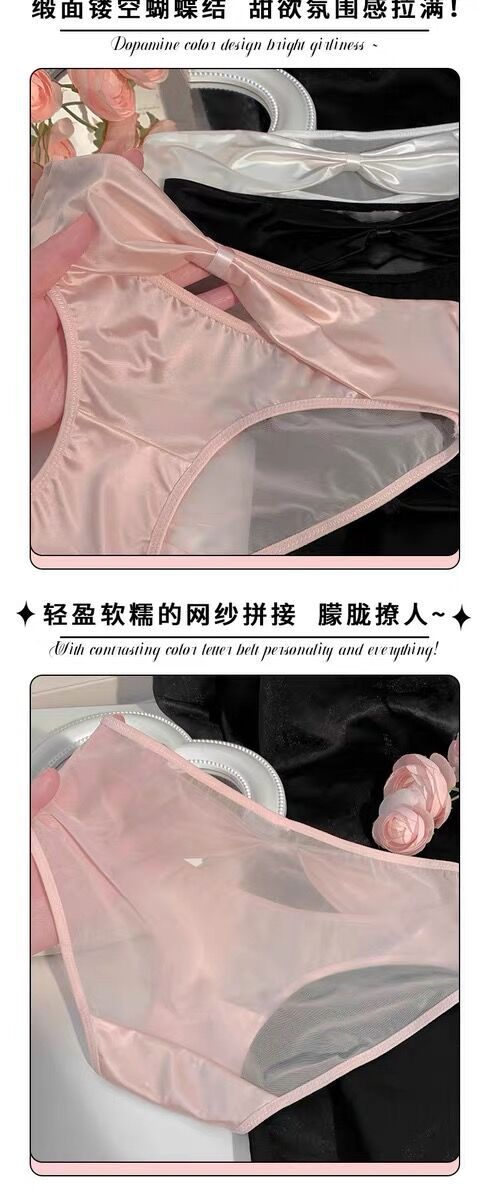 활 빈 아이스 실크 품질 새틴 순수한 욕망 스타일 속옷 여성의 2024 섹시한 레이스 낮은 허리 엉덩이 얇은 메쉬