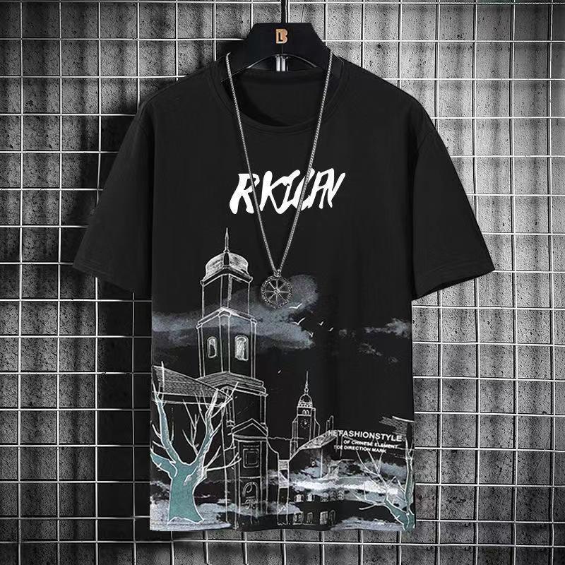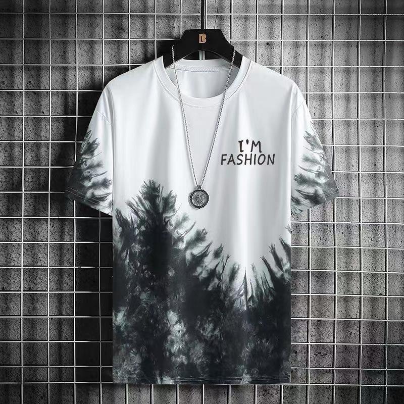 올 매치 그라디언트 아이스 실크 쇼트 슬리브 2024 올 매치 캐주얼 티셔츠 여름 남자 세련된 쿨 느낌 쿨링 탑스토어 가기