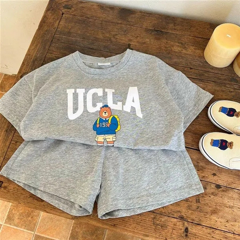 24 어린이 코튼 스포츠 세트 여름 새 소년과 소녀 서양식 만화 캐주얼 투피스 아기 반팔 반바지