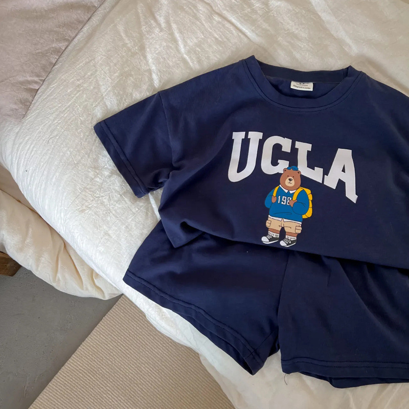 24 어린이 코튼 스포츠 세트 여름 새 소년과 소녀 서양식 만화 캐주얼 투피스 아기 반팔 반바지스토어 가기