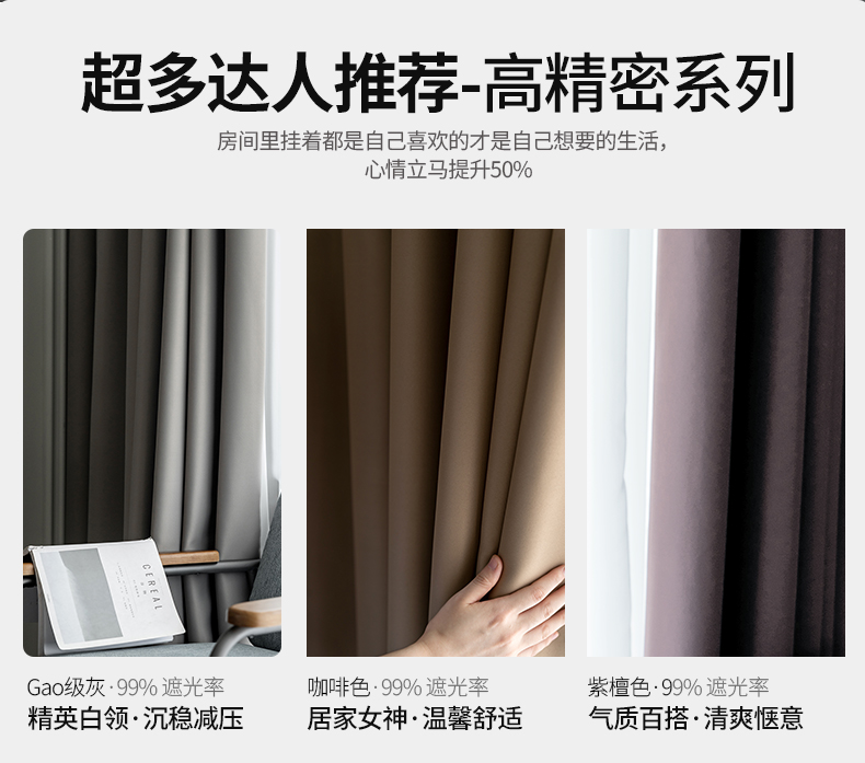 침실 차광 커튼 천 자외선 차단 북유럽 심플 차광 후크 유형 2024 새로운 전체 차광 왕스토어 가기