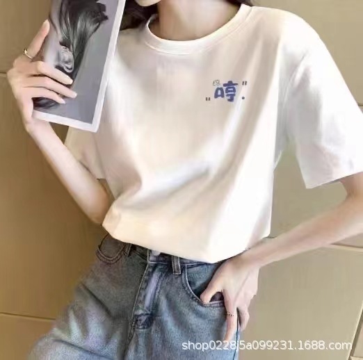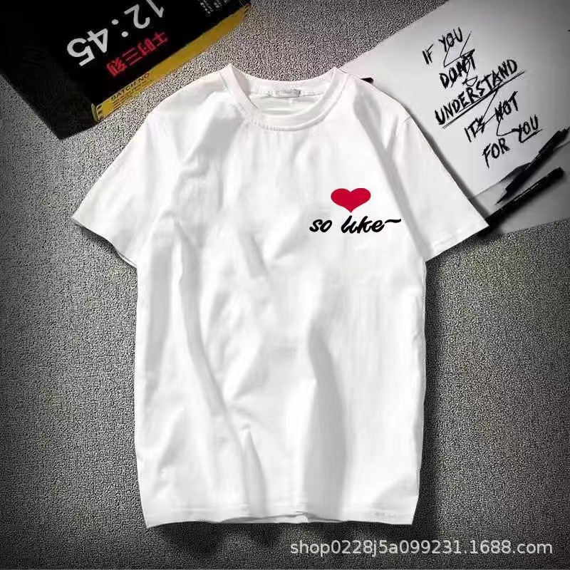 여름 뉴 남자와 여자 퓨어 코튼 반팔 작은 가슴 독특한 남녀 티셔츠 루즈 캐주얼 올 매치 탑 트렌디스토어 가기