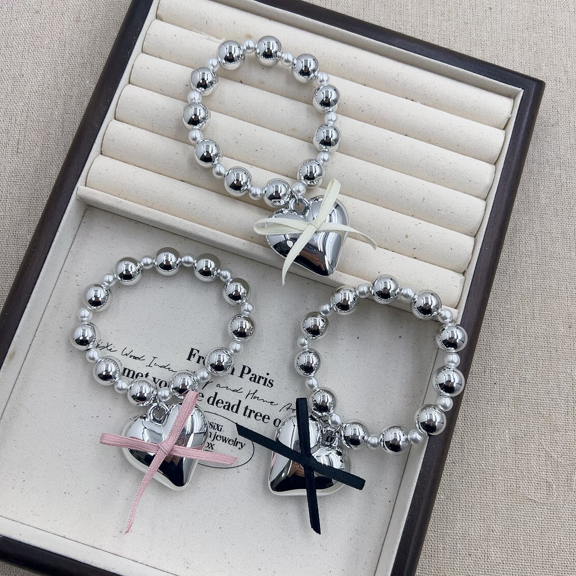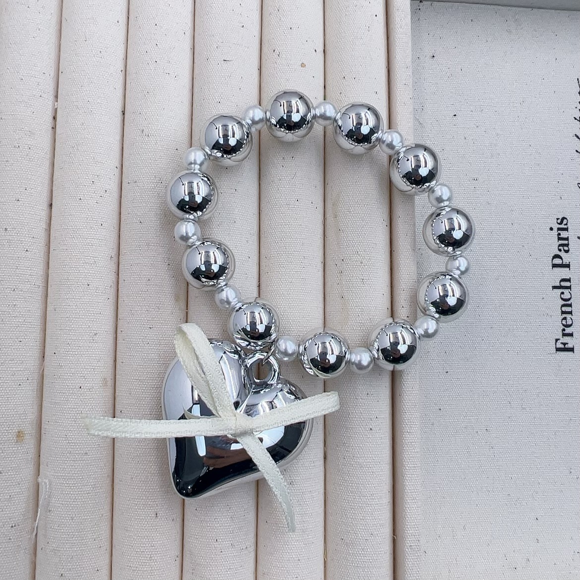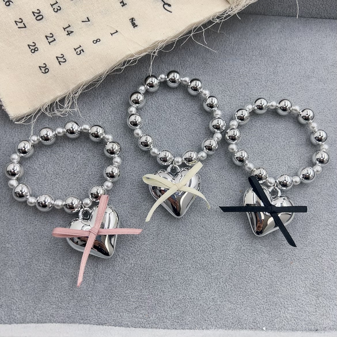 한국 금속 공 실버 사랑 달콤한 쿨 활 리본 헤어 링 패션 달콤한 우아한 포니 테일 헤어 액세서리