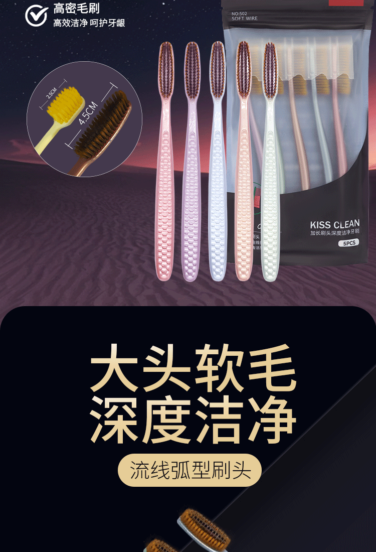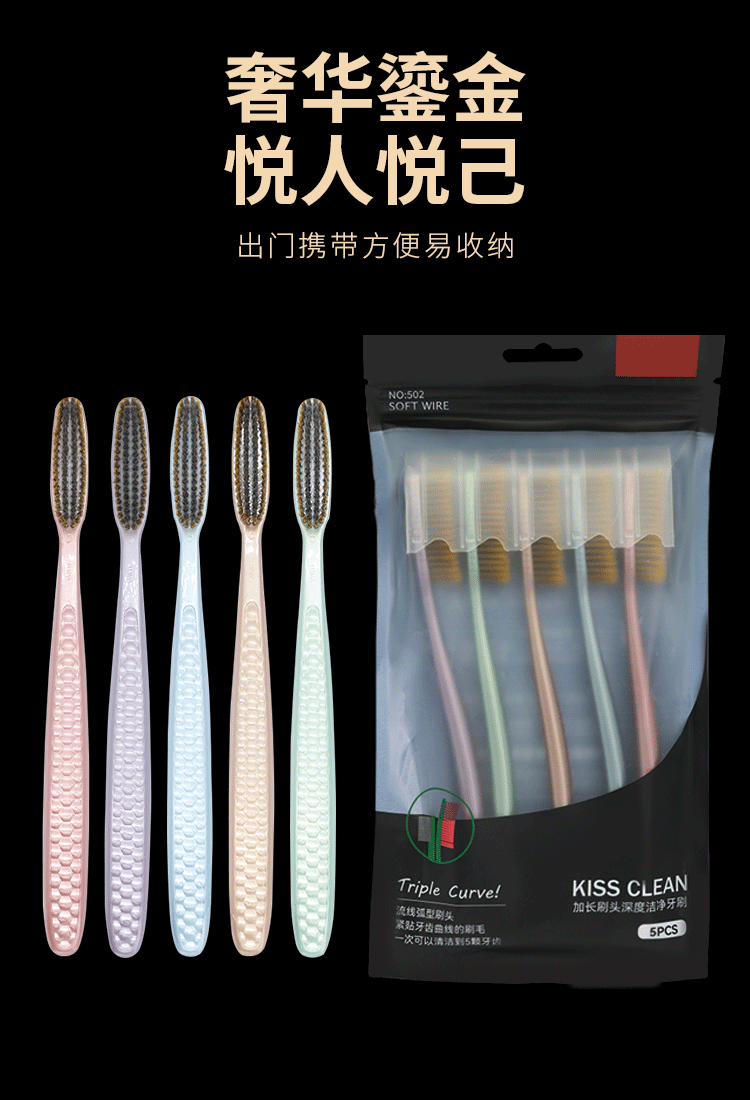 긴 머리 U 자형 칫솔 부드러운 머리 고급 가정용 성인 정품 도매 5 팩/가방 고급 청결한 긴 머리 칫솔