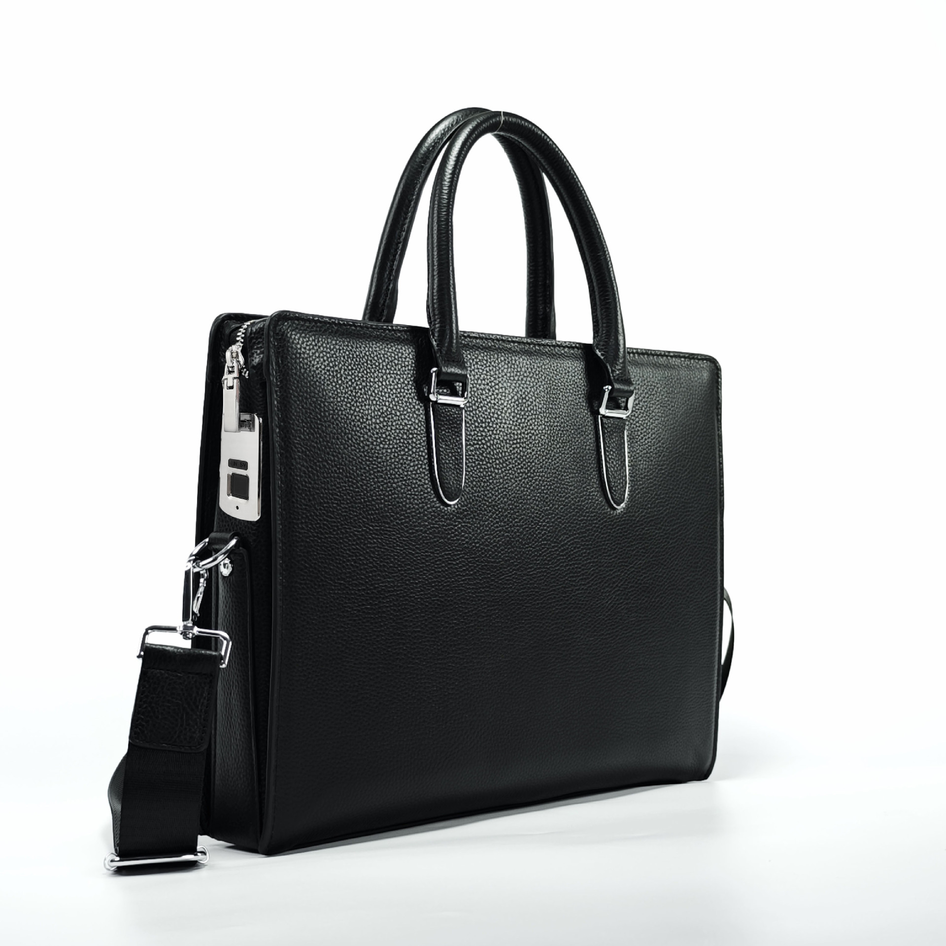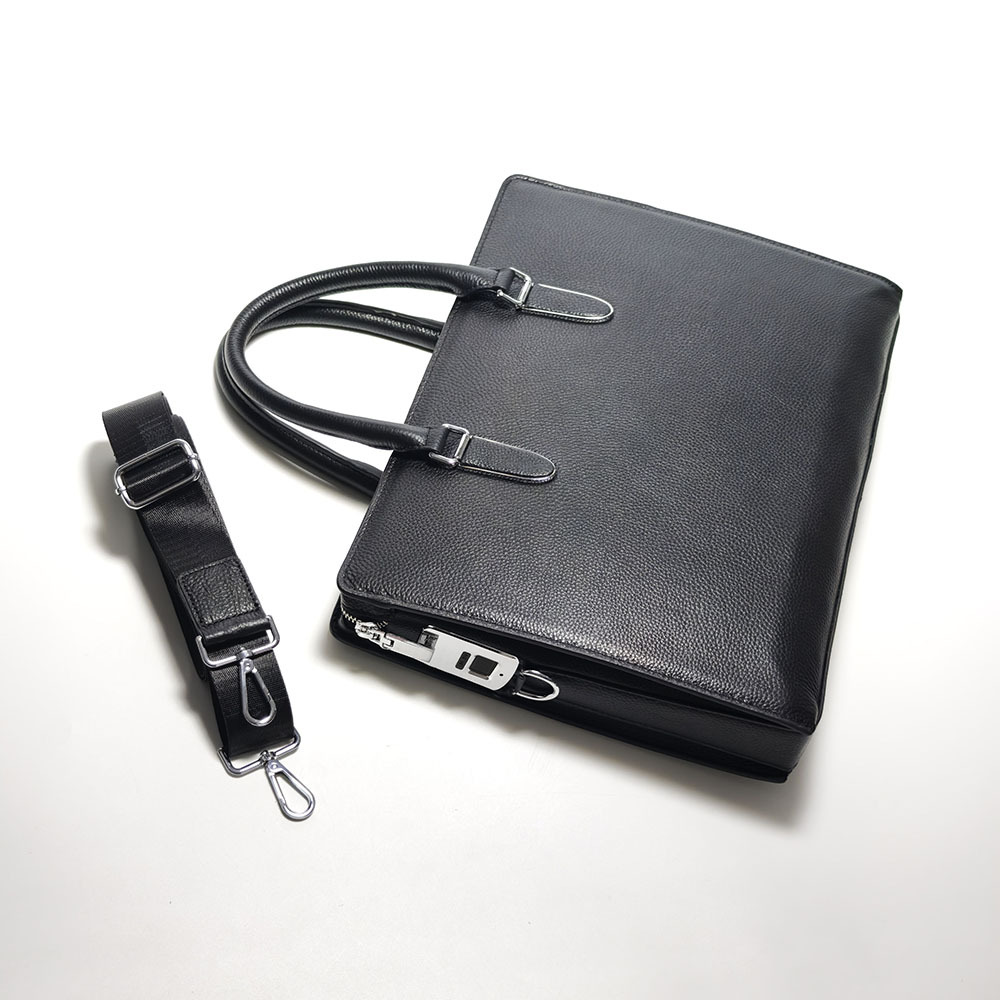 도난 방지 지문 잠금 핸드백 남성용 첫 번째 레이어 소 가죽 대용량 고급 남성 비즈니스 통근 정품 가죽 서류 가방