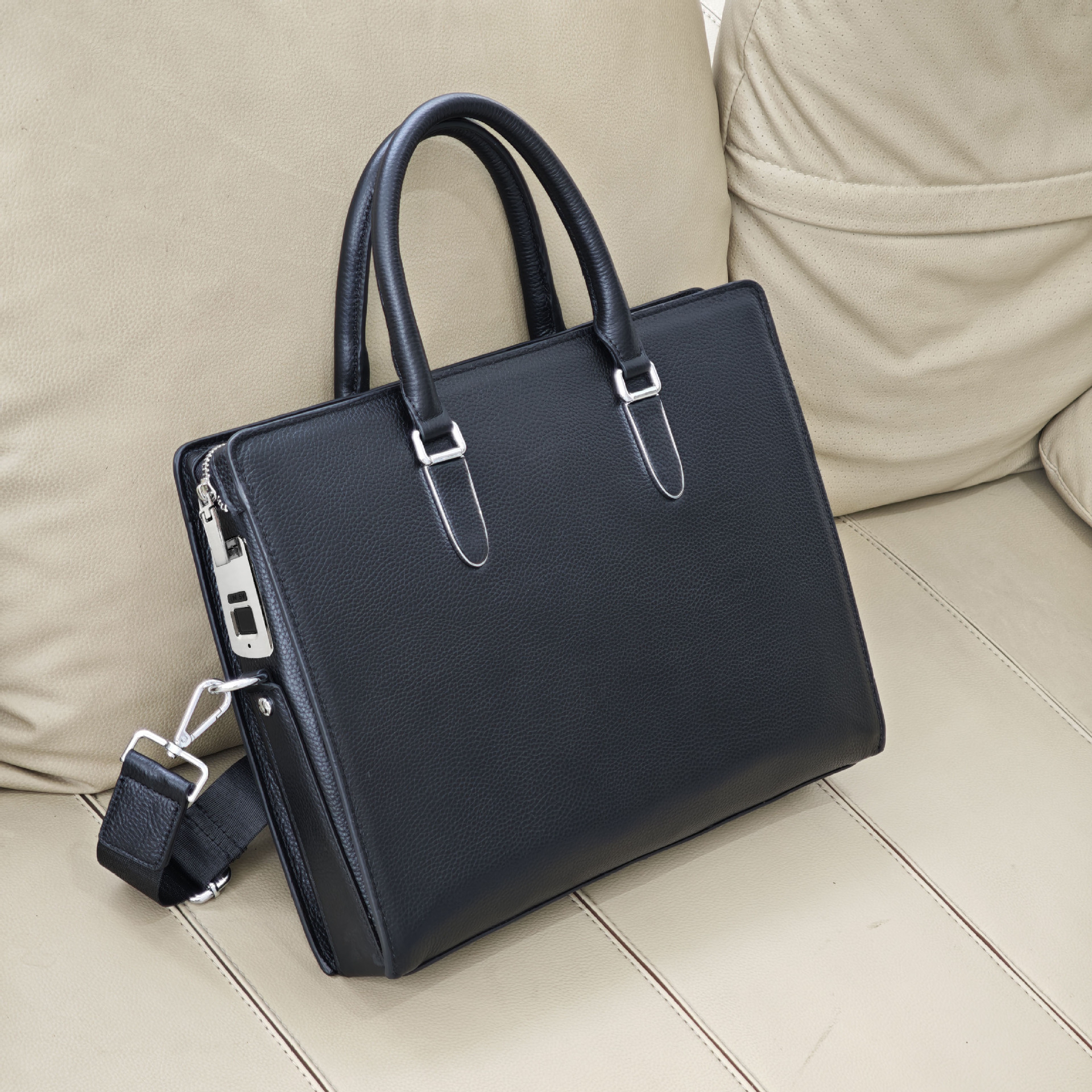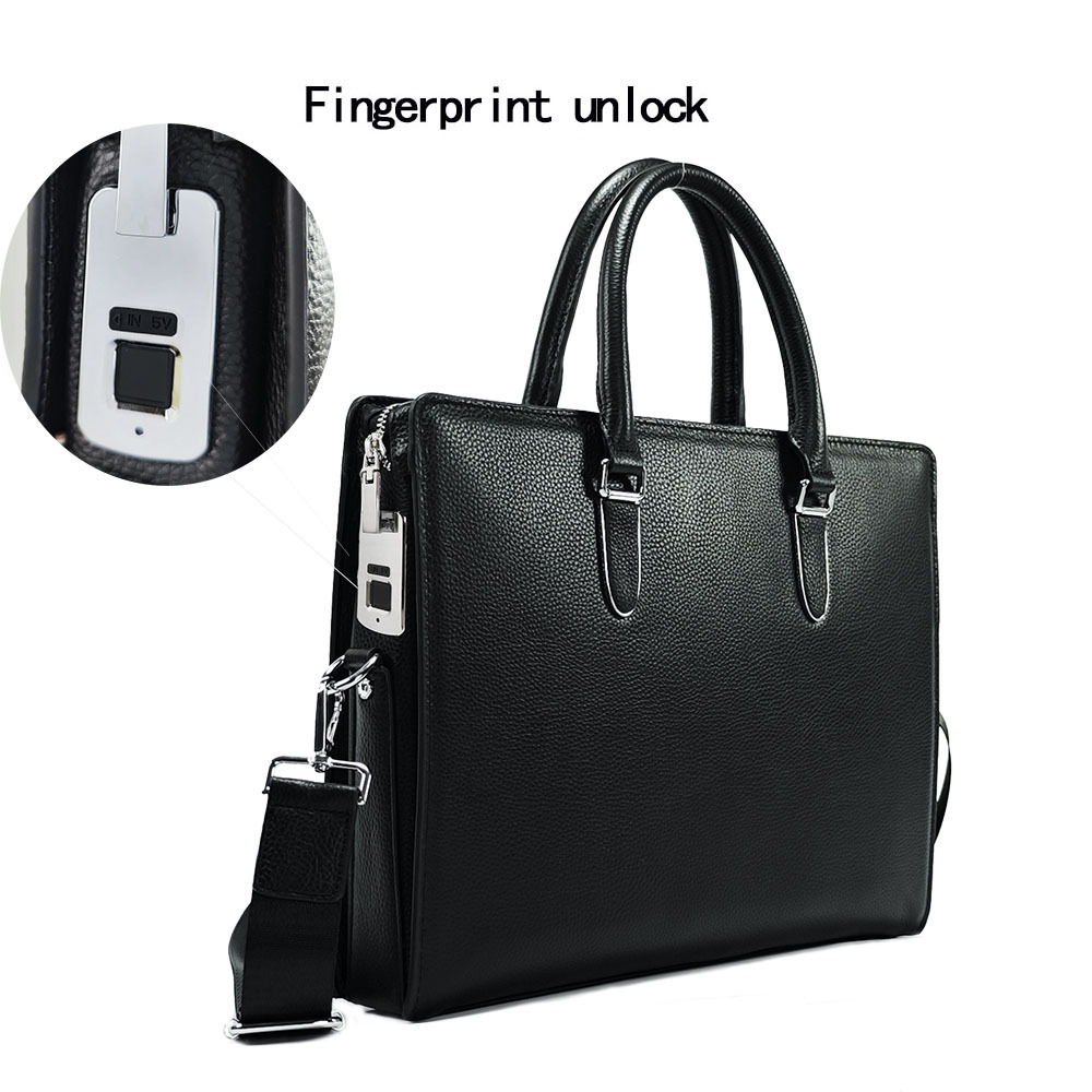 도난 방지 지문 잠금 핸드백 남성용 첫 번째 레이어 소 가죽 대용량 고급 남성 비즈니스 통근 정품 가죽 서류 가방스토어 가기