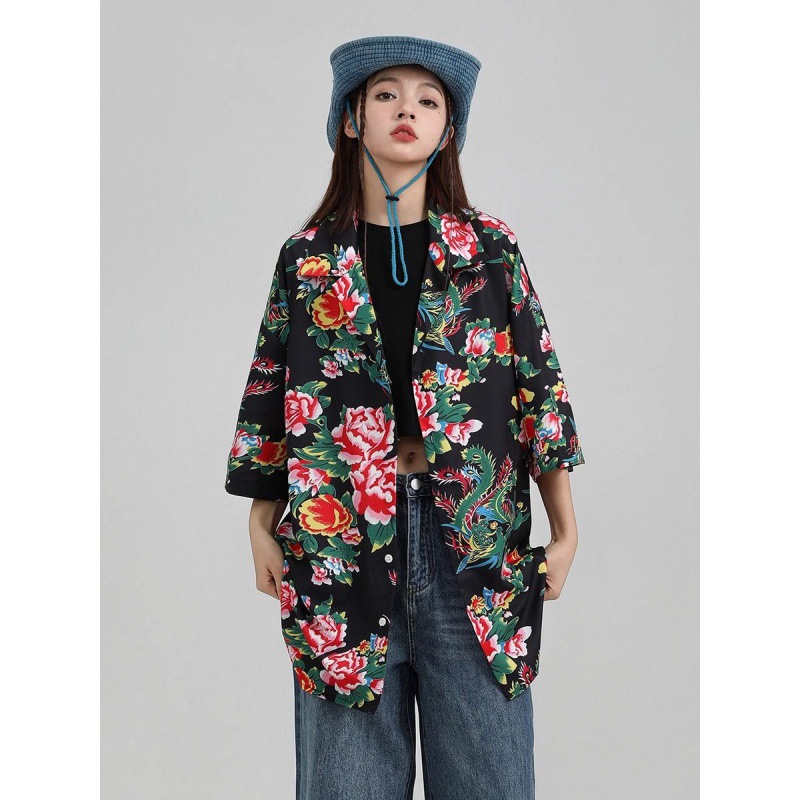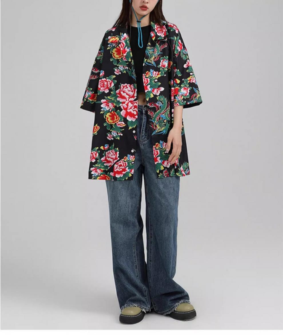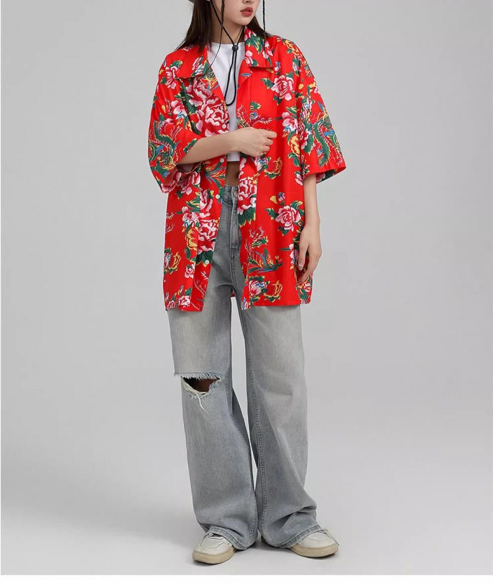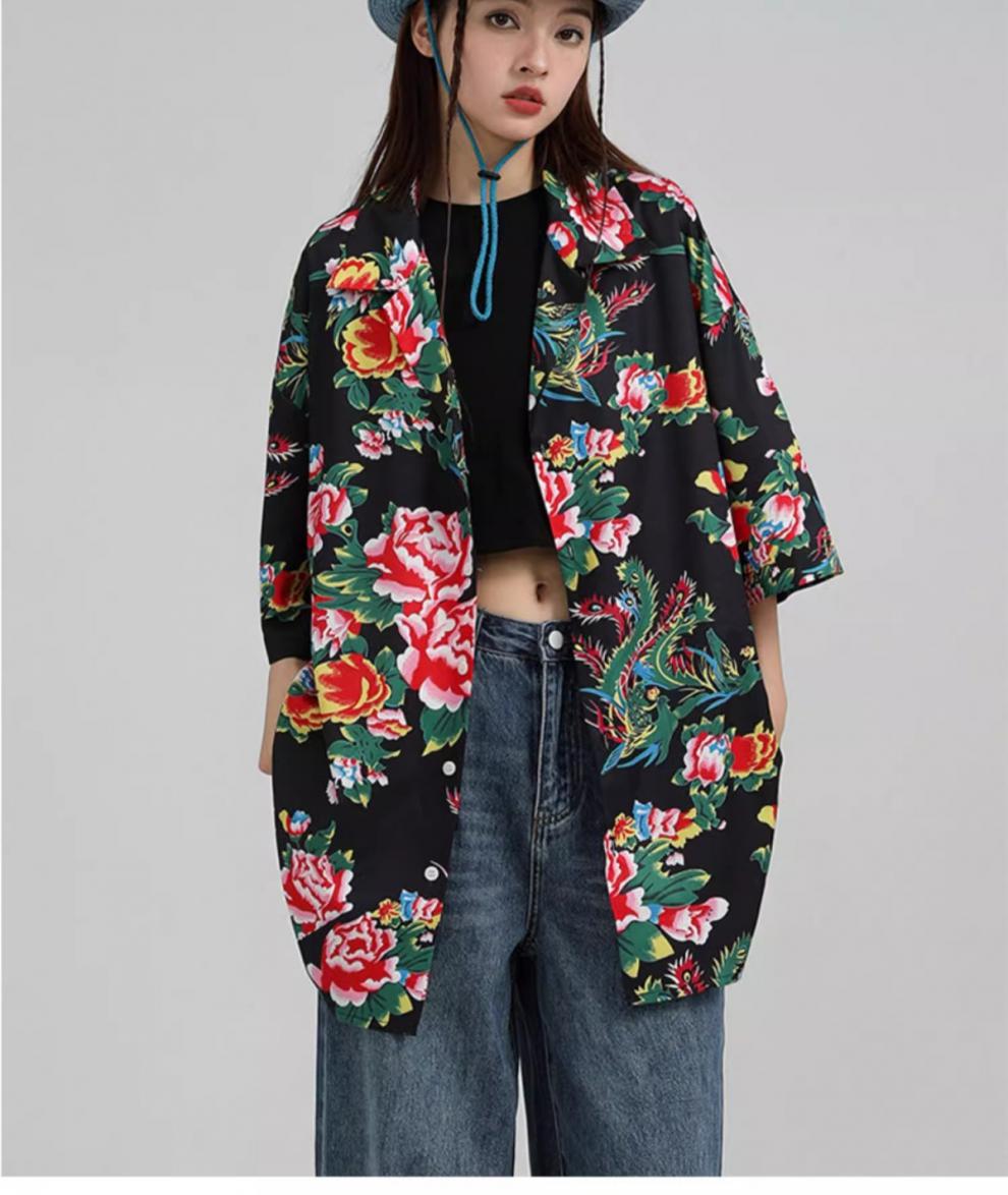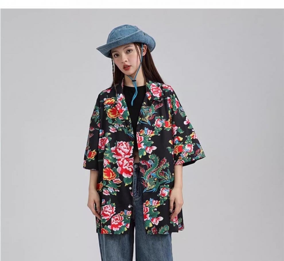새로운 중국 스타일 동북 큰 꽃 셔츠 여성의 여름 얇은 짧은 소매 탑 올해 인기있는 세련된 슈퍼 니스 셔츠스토어 가기