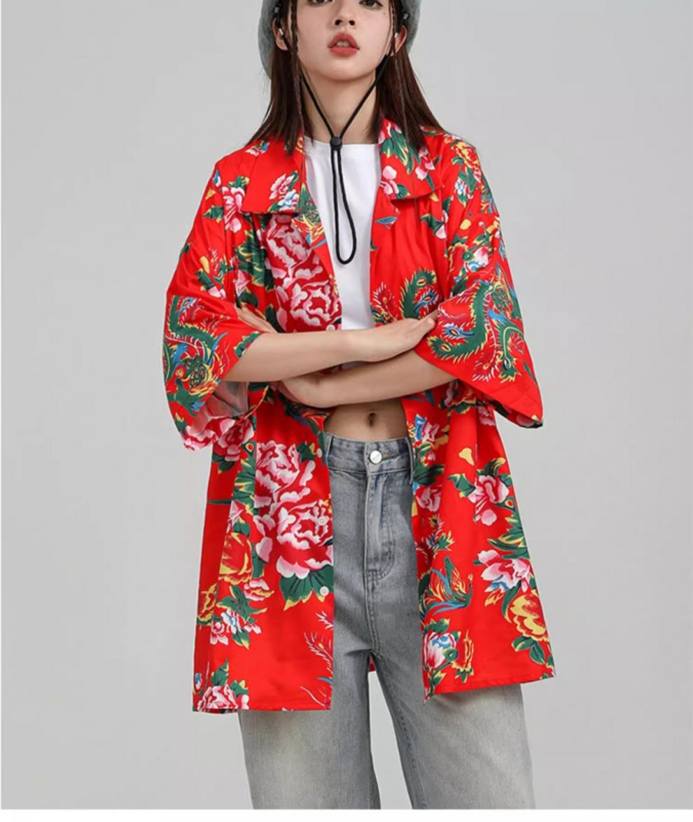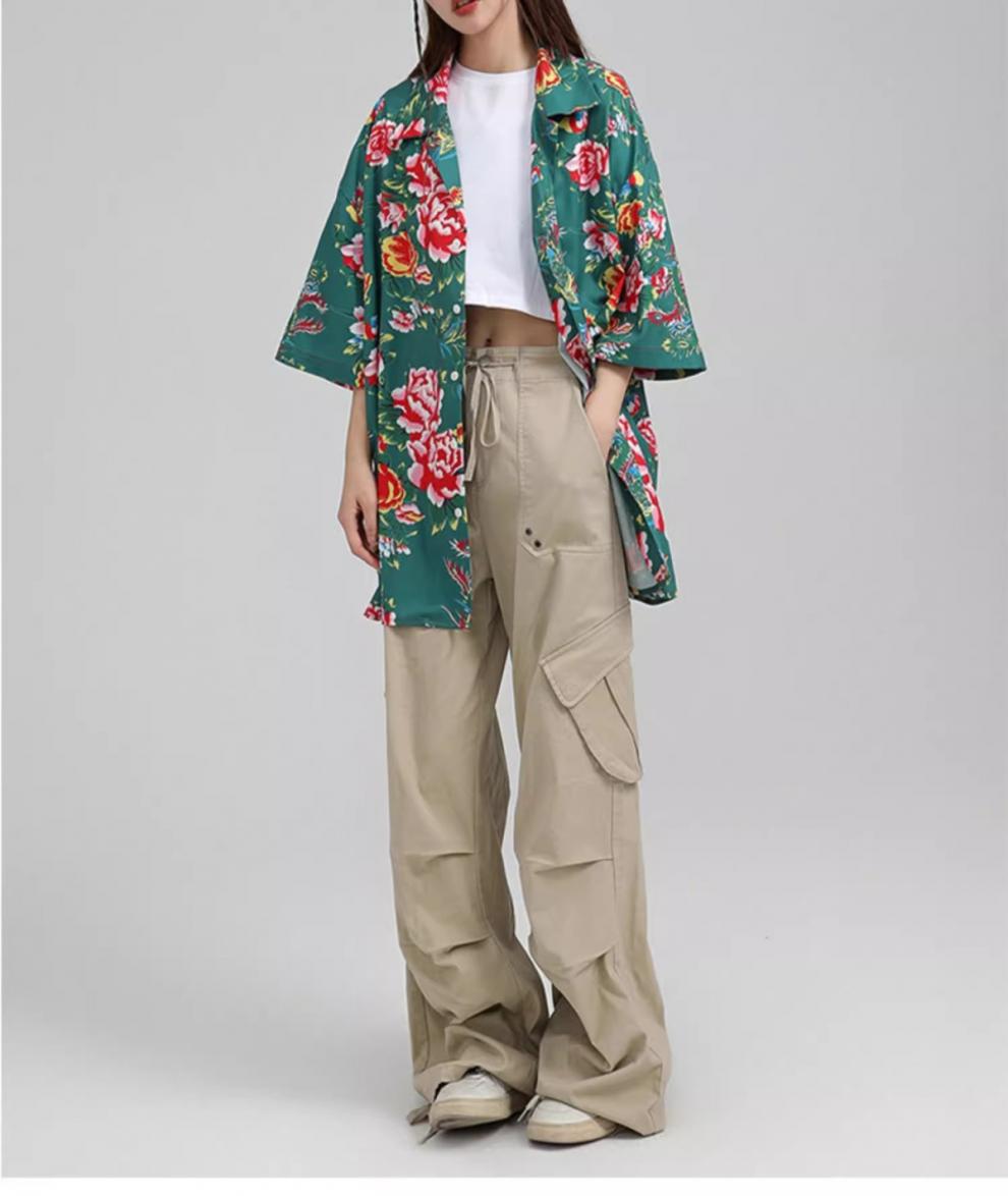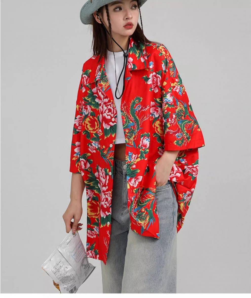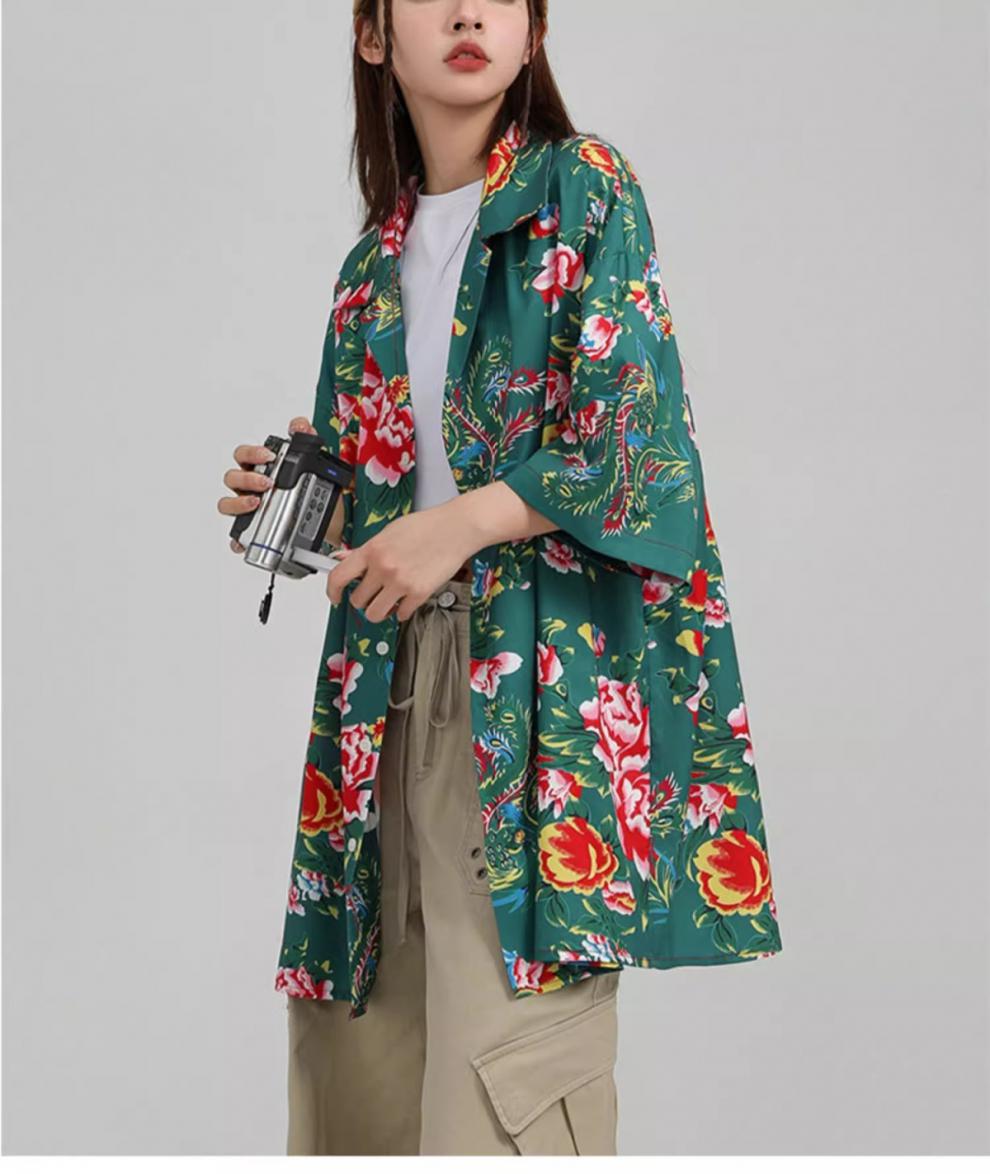 새로운 중국 스타일 동북 큰 꽃 셔츠 여성의 여름 얇은 짧은 소매 탑 올해 인기있는 세련된 슈퍼 니스 셔츠스토어 가기
