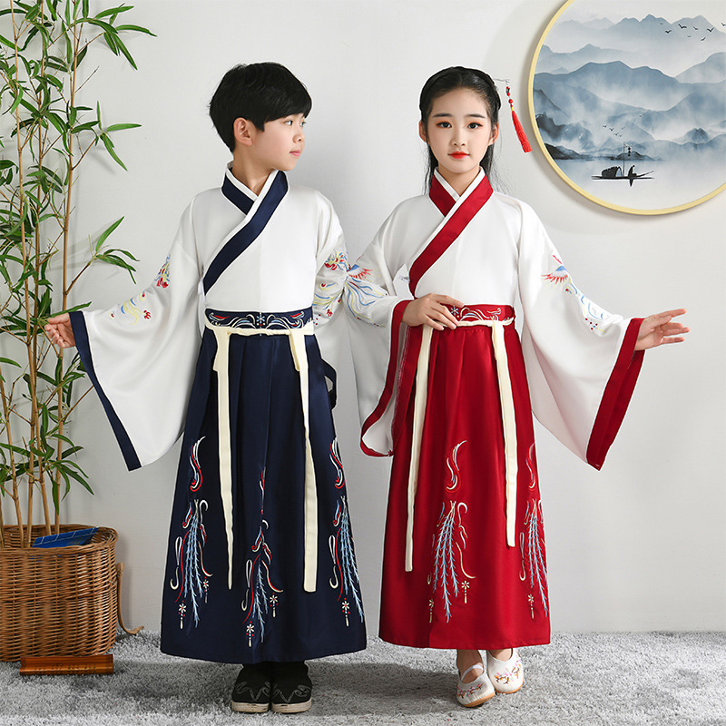 어린이 고대 의류 한후 소녀 구박스 공연 의류 시 낭송 합창 3 자 수트라 북 보이 공연 의류스토어 가기