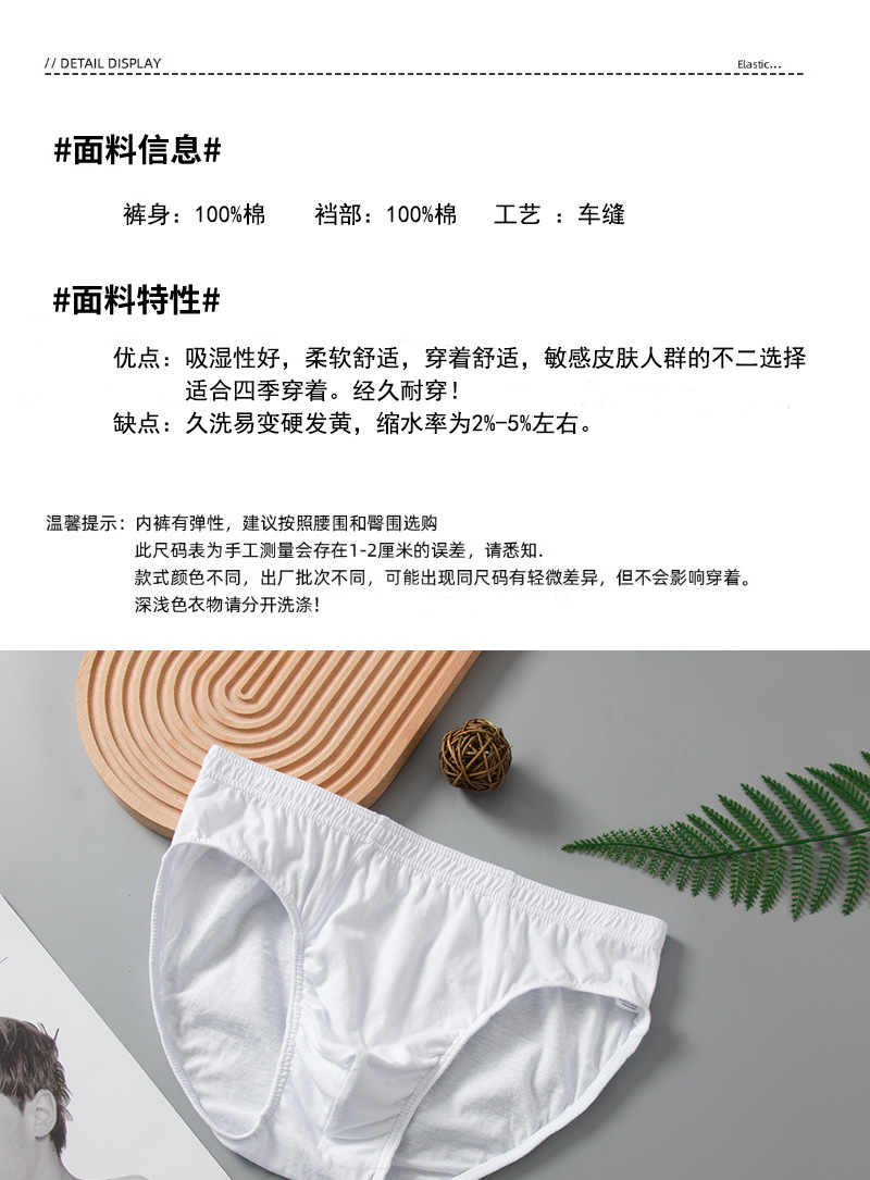 순수한 흰색 개인 포장 남성 속옷 면화 브리프 100 면 속옷 밝은 색상 흰색 통기성 섹시한 봄 여름