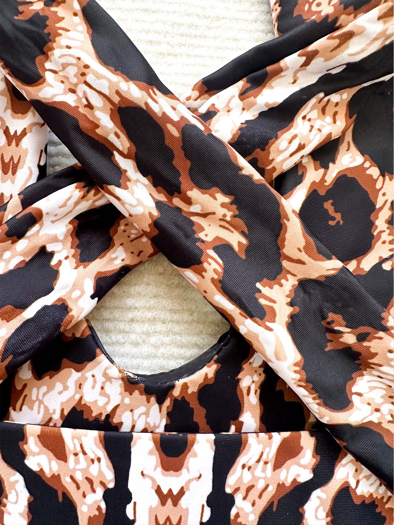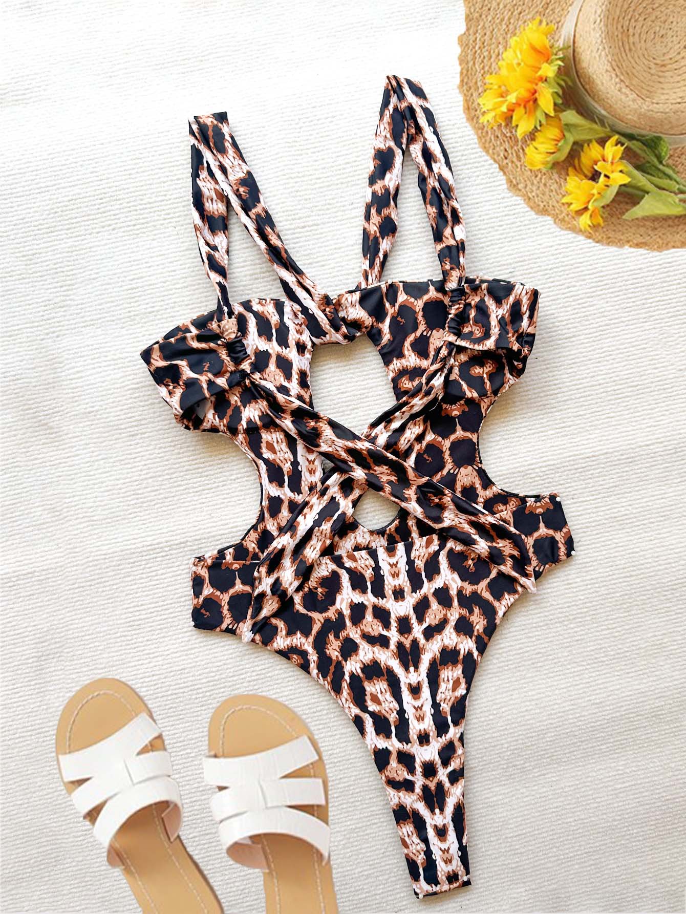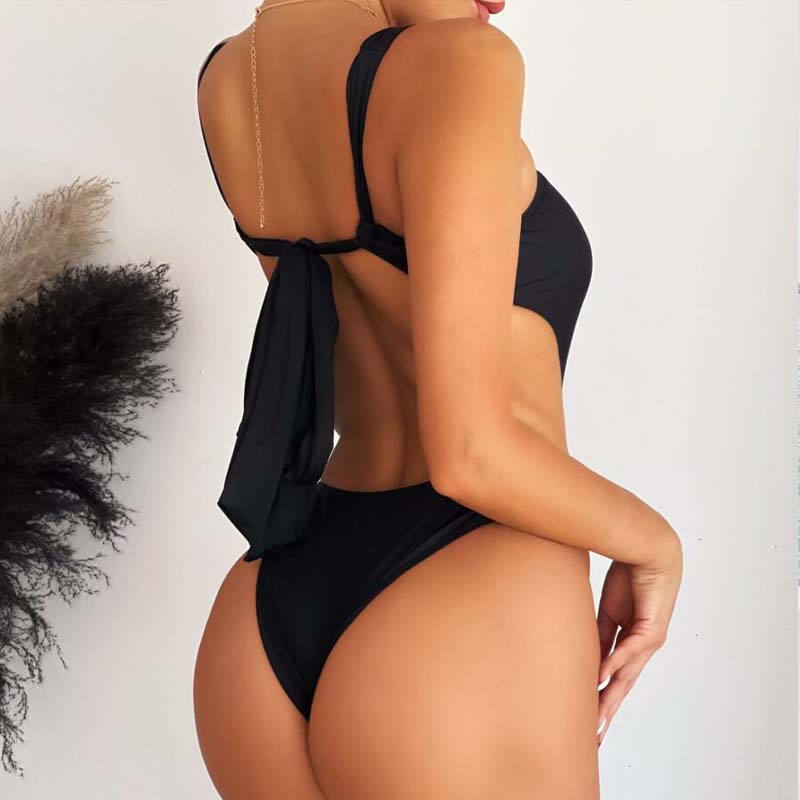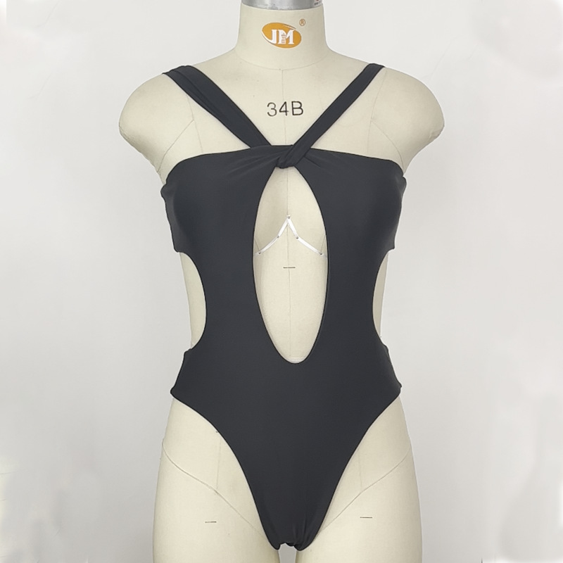 러시아의 새로운 비키니 레오파드 프린트 솔리드 컬러 홀터넥 스트랩 수영 수영 꽉 중공 섹시한 원피스 수영복 여성용