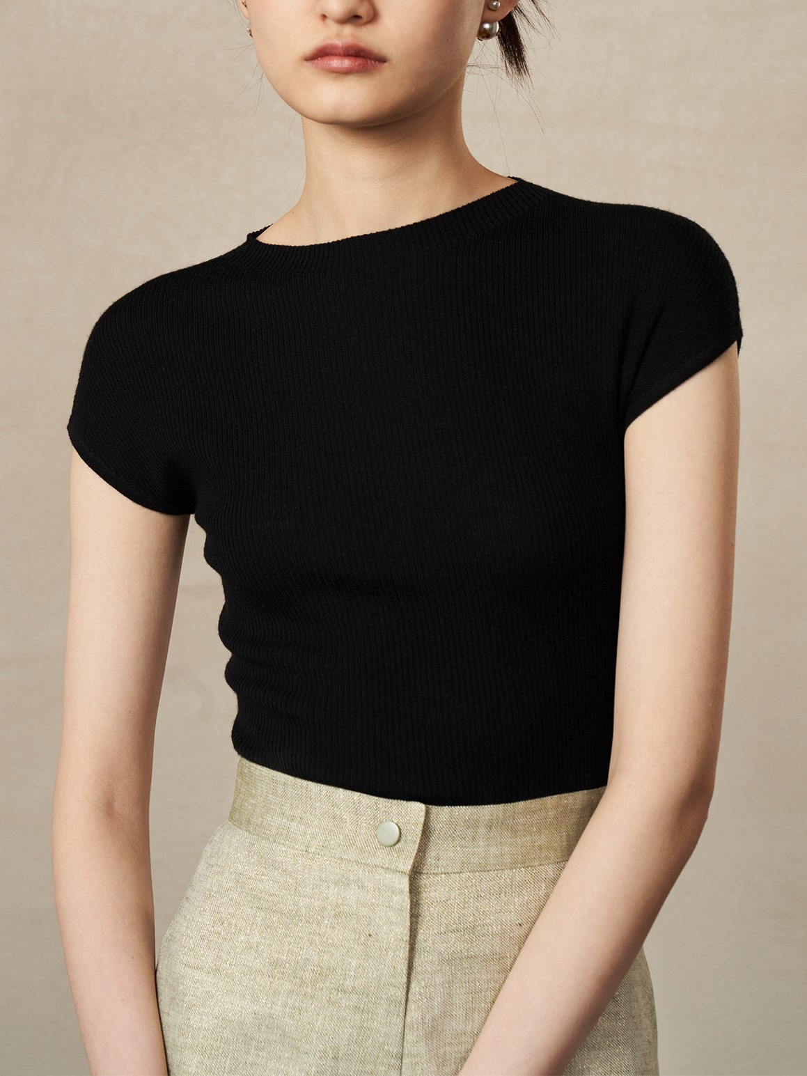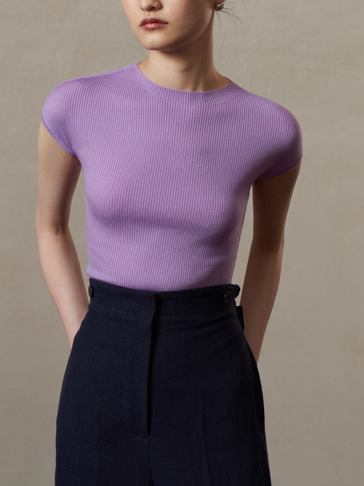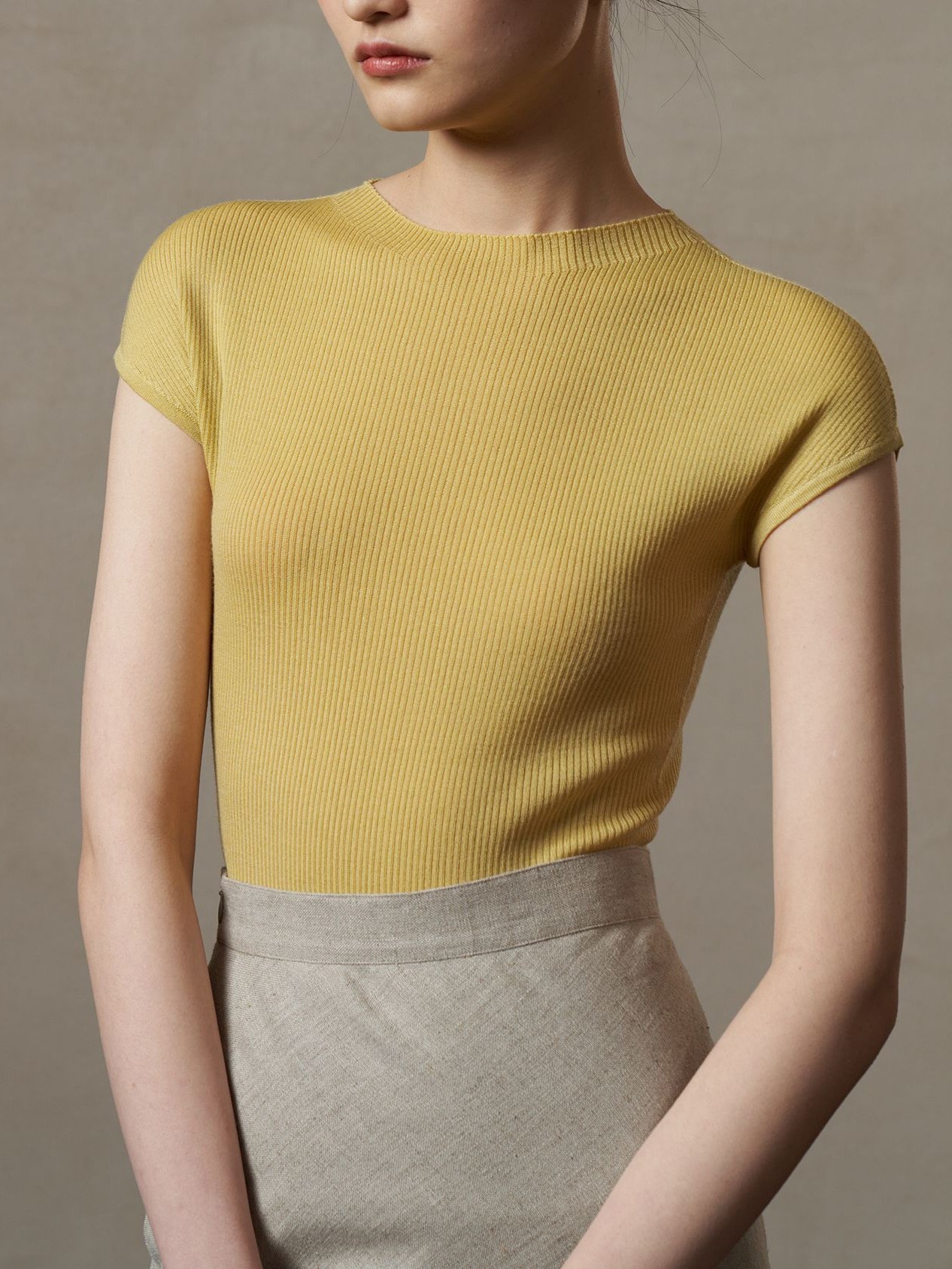 여름을위한 유화와 같은 질감, 부드럽고 매력적인 클래식 어깨 소매 반팔 스웨터 티셔츠스토어 가기