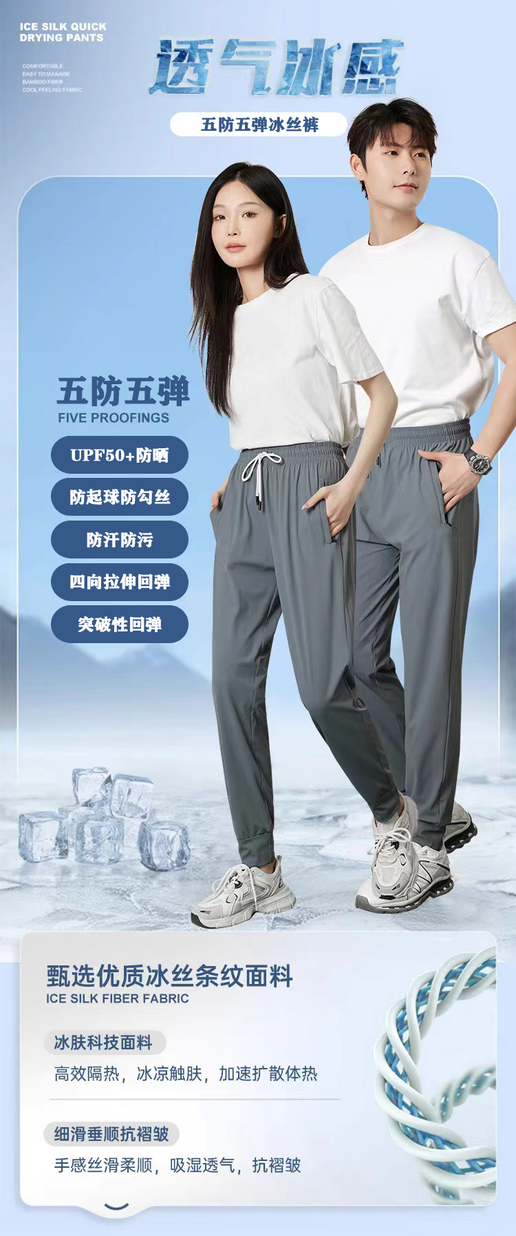 5 대 예방 및 5 폭탄 기술 여름 얼음 실크 퀵 건조 제로 센스 에어컨 바지 생중계 남녀 캐주얼 바지