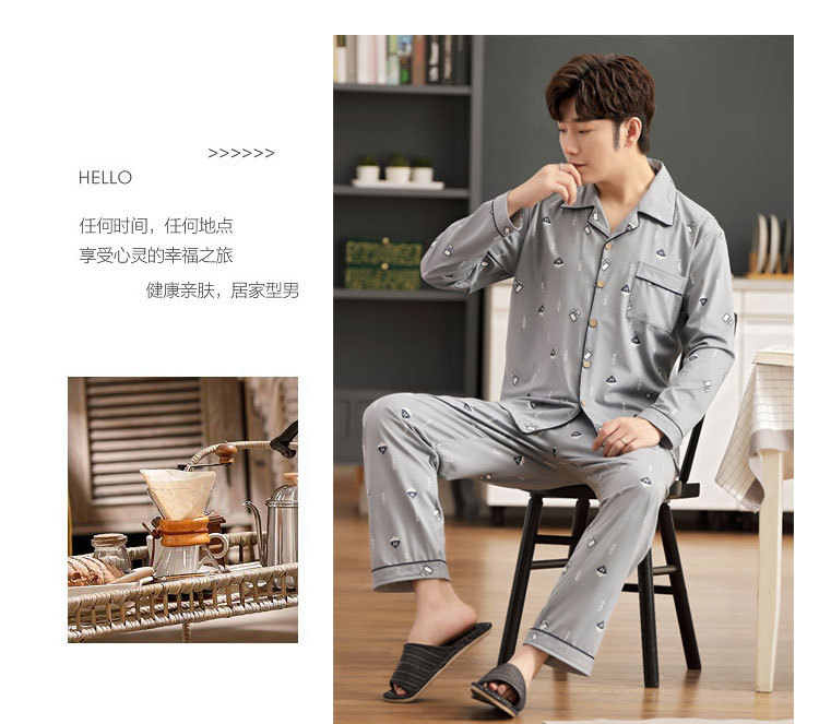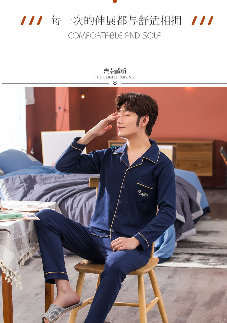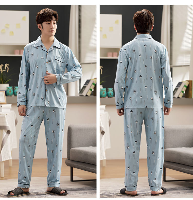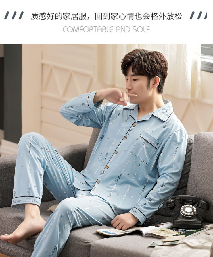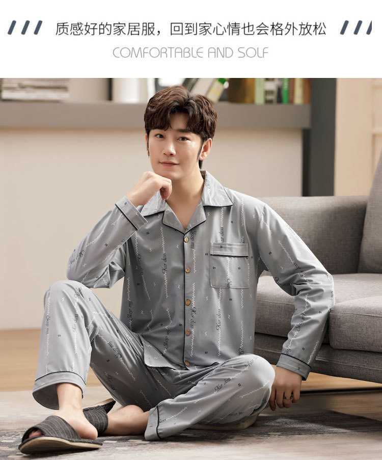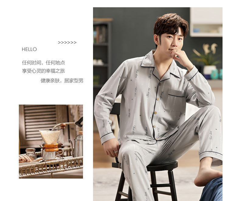 伊尔欣L-5XL男士睡衣仿棉长袖春秋款青少年夏季天男生280斤家居服