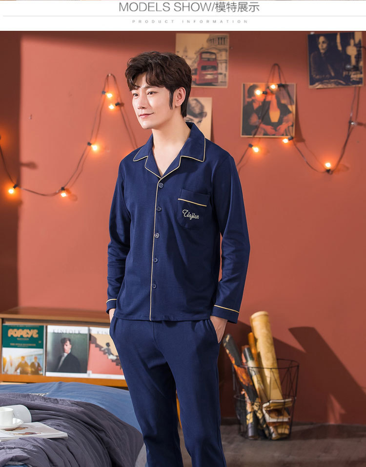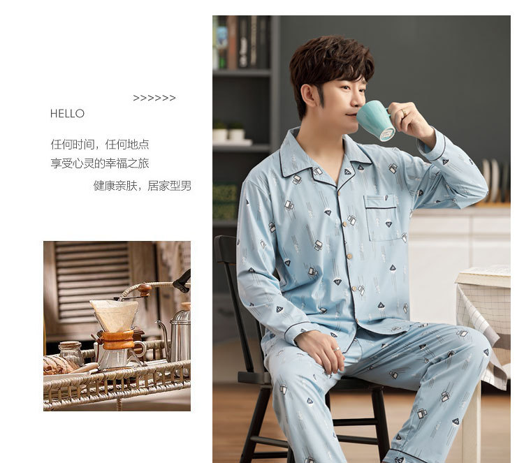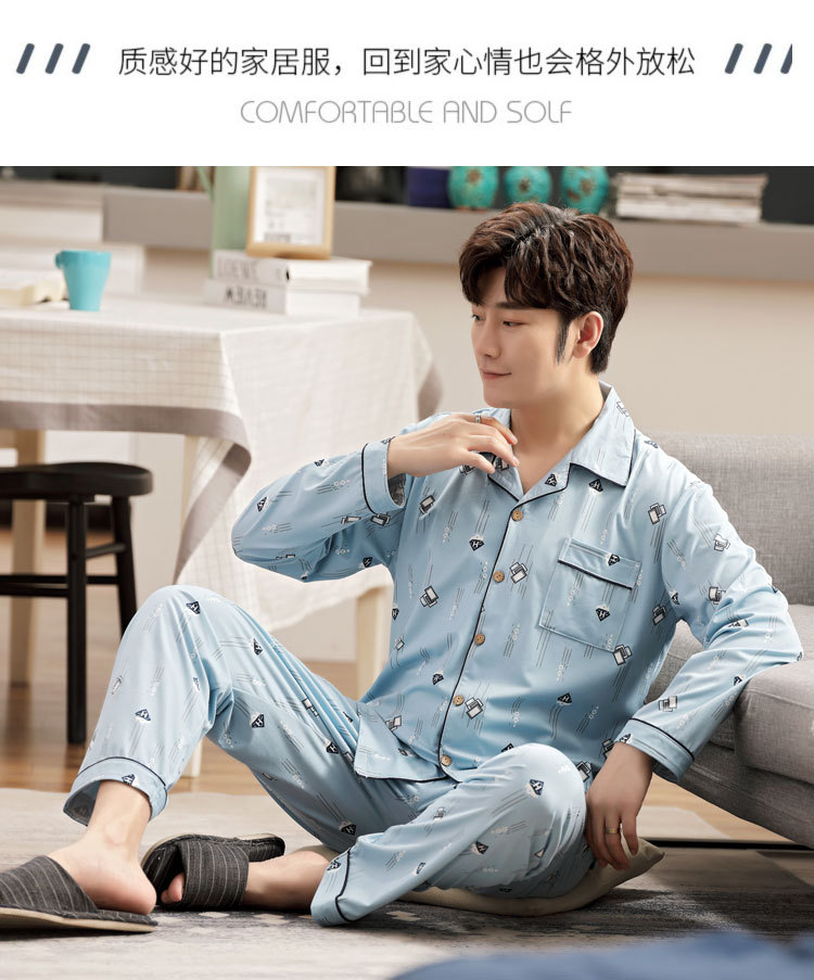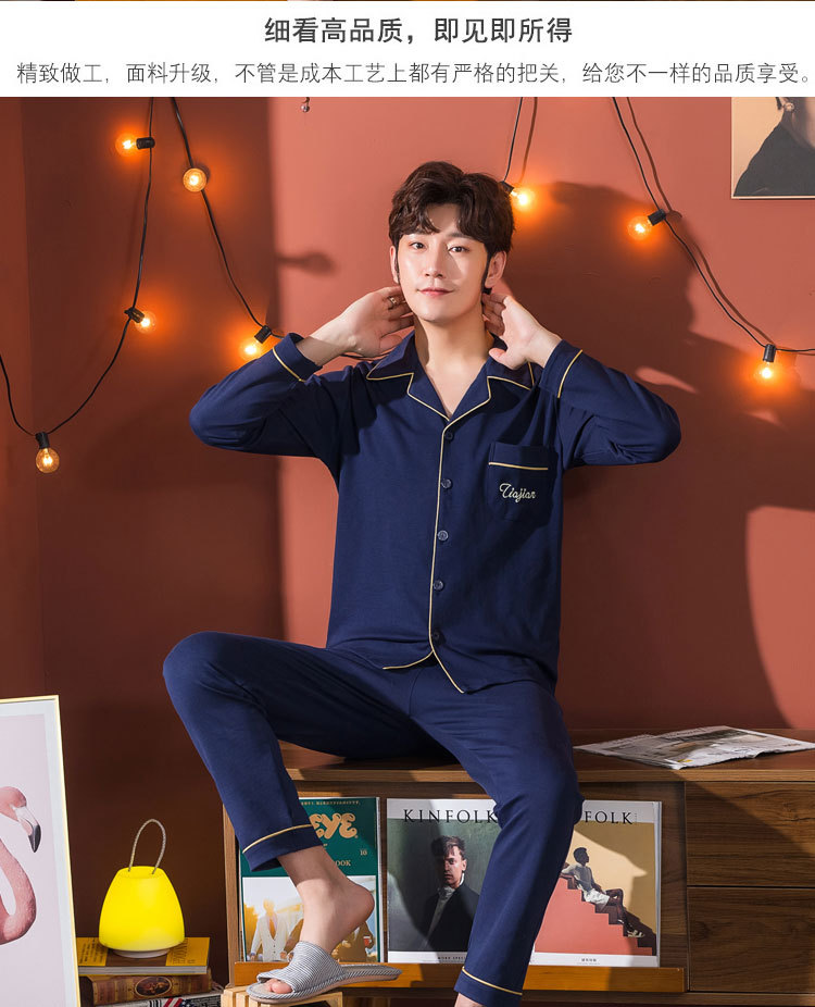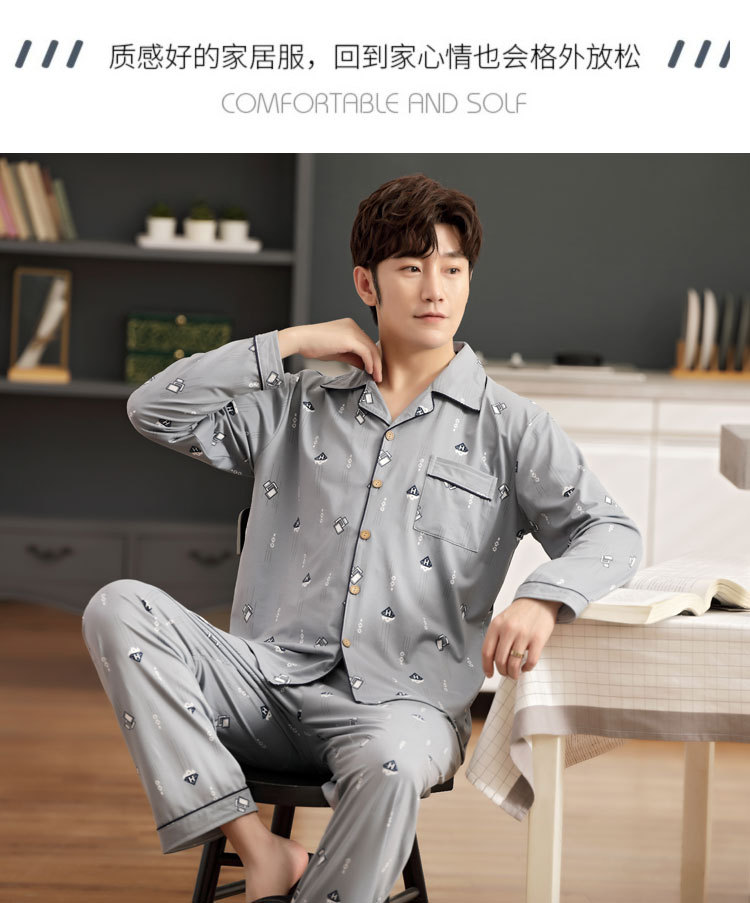 伊尔欣L-5XL男士睡衣仿棉长袖春秋款青少年夏季天男生280斤家居服